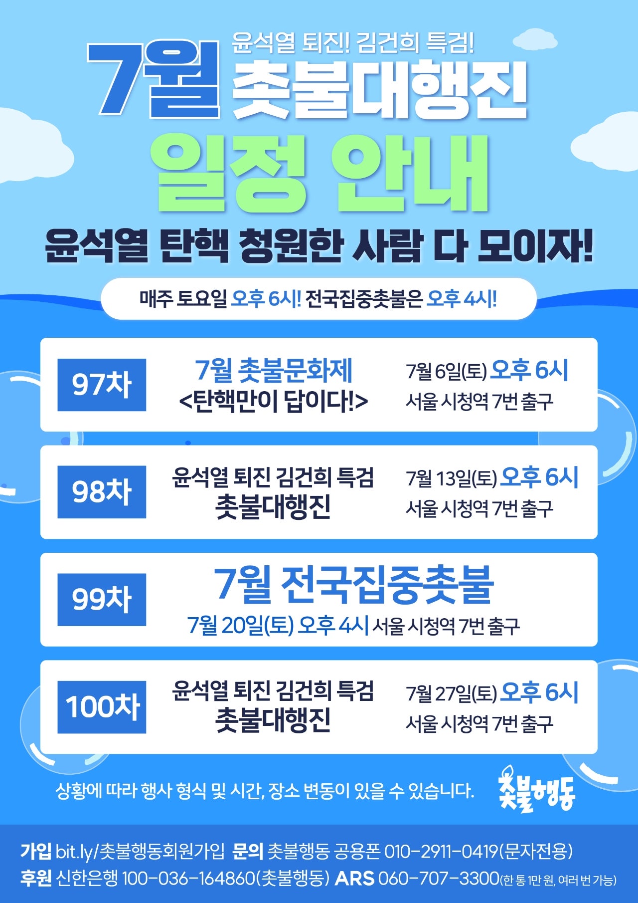 7월20일(토) 윤석열 퇴진 김건희 특검 7월 전국집중 99차 촛불 대행진 집회 일정 https://tadream.tistory.com/35760