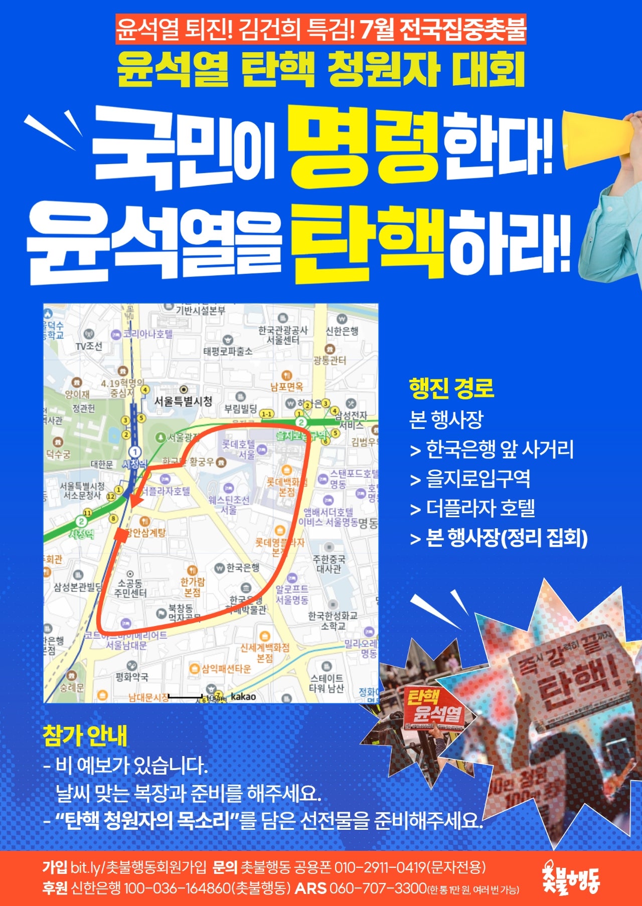 7월20일(토) 4시 시청역 8번 출구 윤석열 퇴진 김건희 특검 7월 전국집중 99차 촛불 대행진