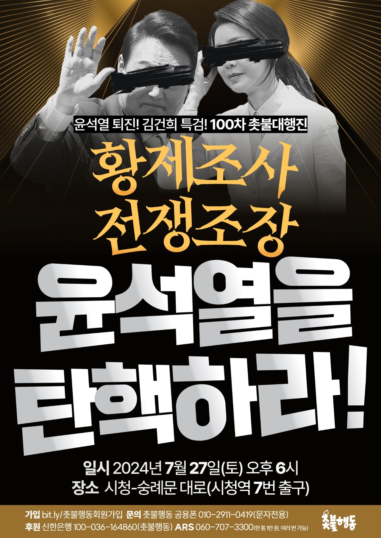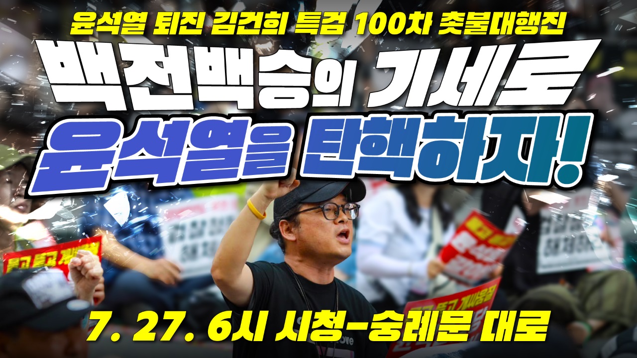 7월27일(토) 윤석열 퇴진 김건희 특검 100차 촛불대행진 집회 일정