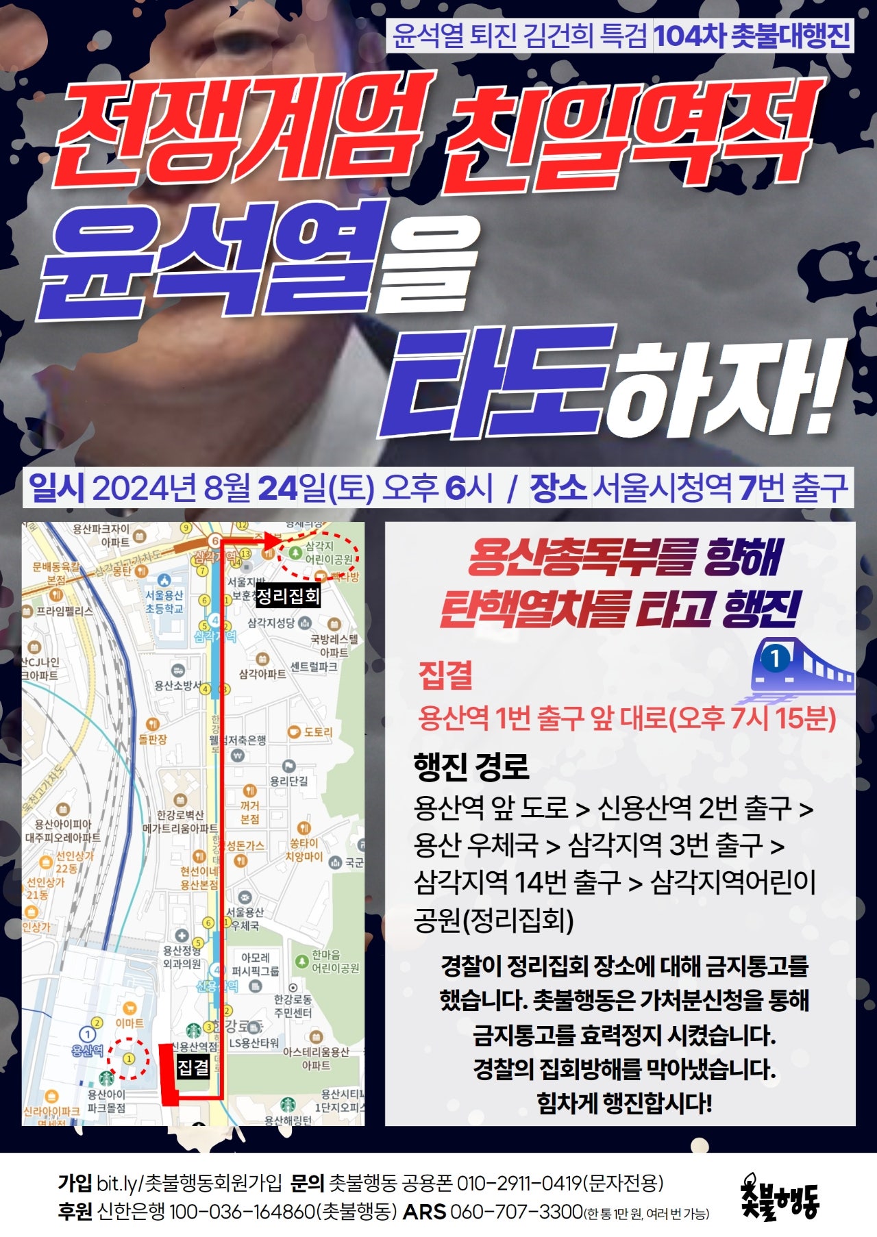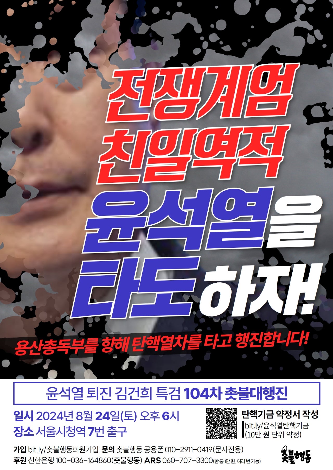 8월24일(토) 윤석열 퇴진 김건희 특검 104차 촛불대행진 집회 일정