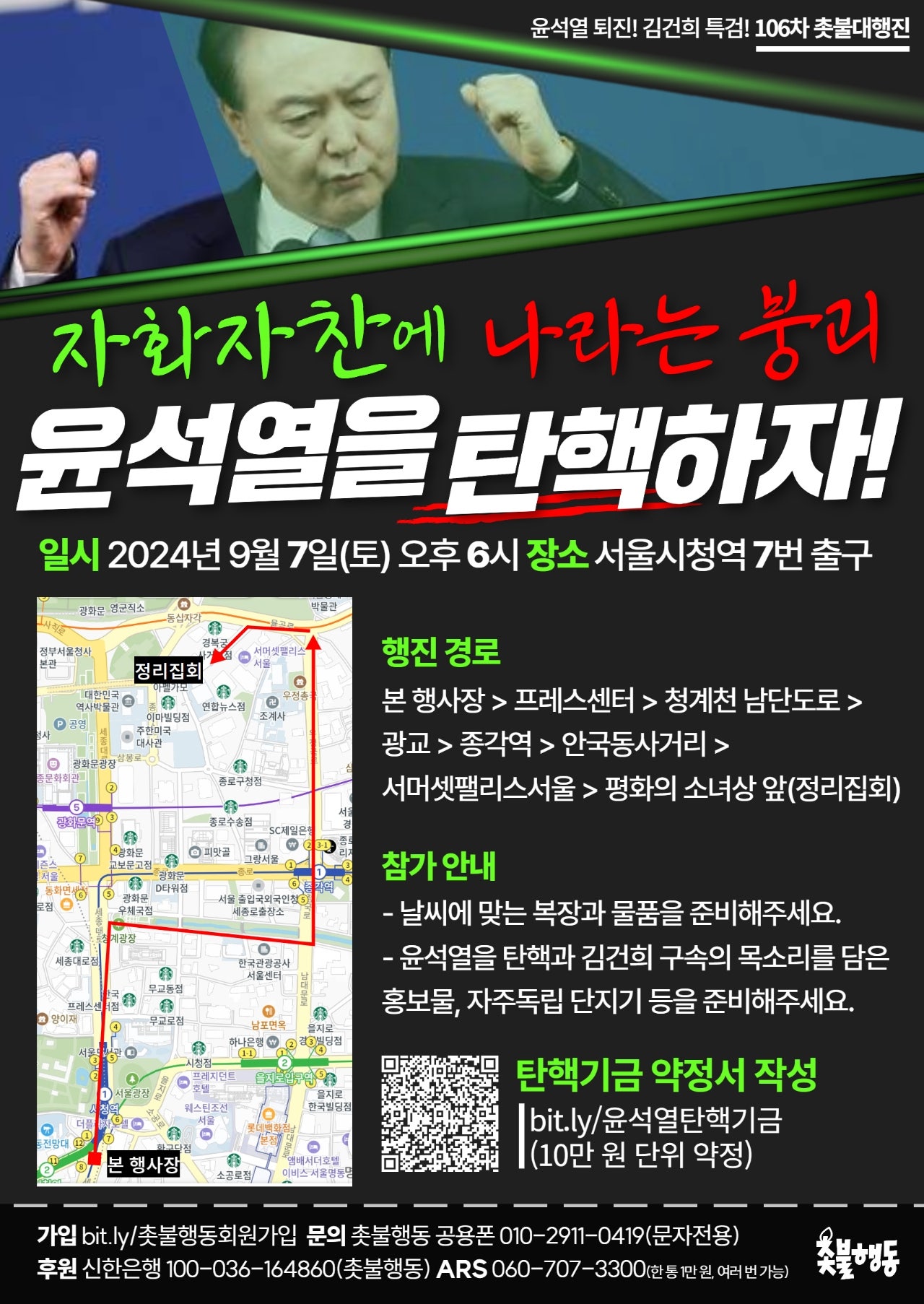 9월7일(토) 윤석열 퇴진 김건희 특검 106차 촛불대행진 집회 일정