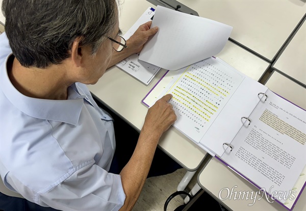 ▲ 방자명 중령의 장남 방문성씨가 지난 13일 경기도 화성시청에서 '특수범죄 처벌에 관한 특별법' 혁명방해혐의로 징역 15년이 선고된 아버지의 1·2심 판결문 원문을 설명하고 있다. 이 법은 부칙에 공포한 날로부터 3년 6개월 전까지 소급적용하도록 규정돼 있다. ⓒ 김화빈