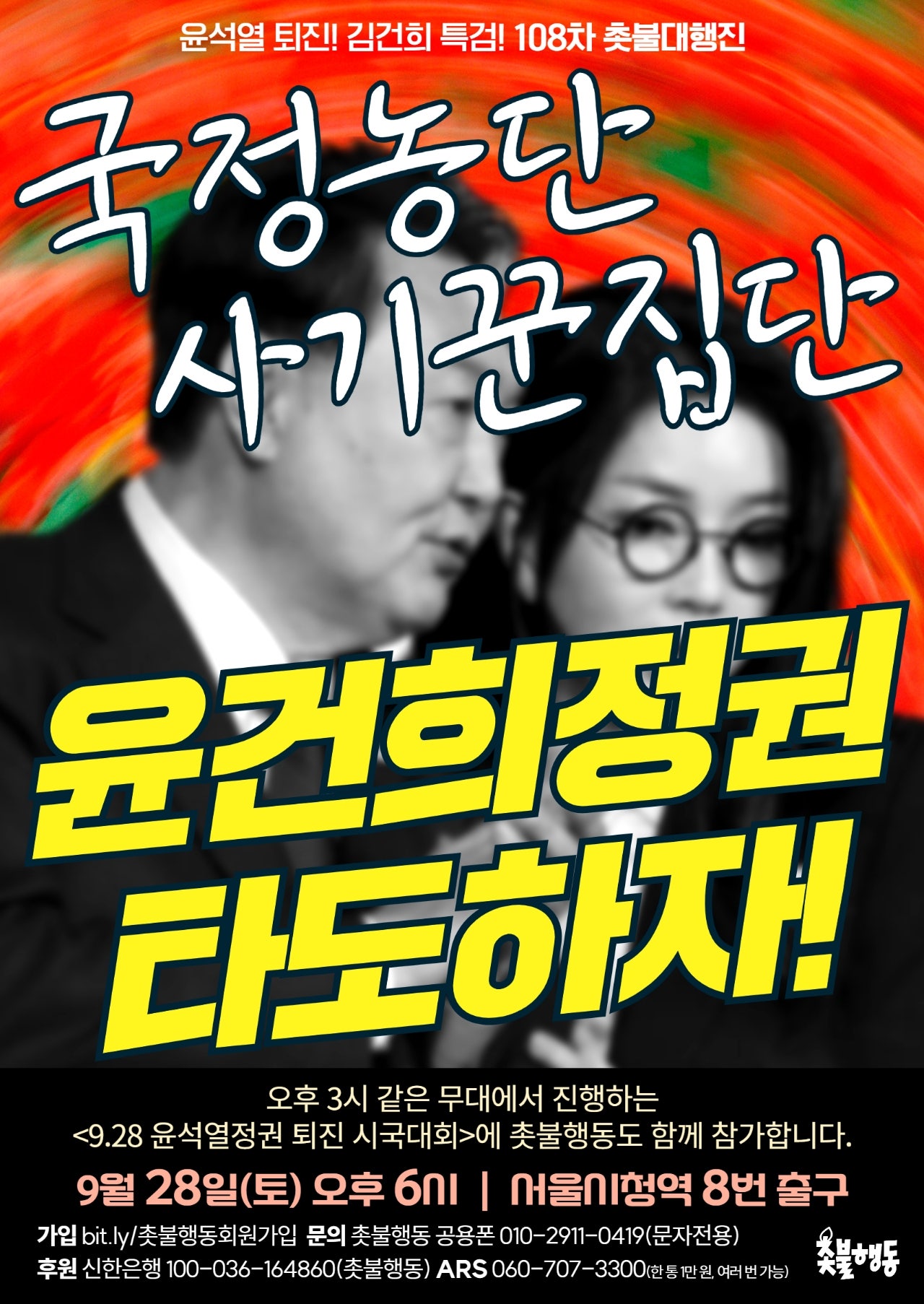 9월28일(토) 윤석열 퇴진 김건희 특검 108차 촛불대행진 집회 일정