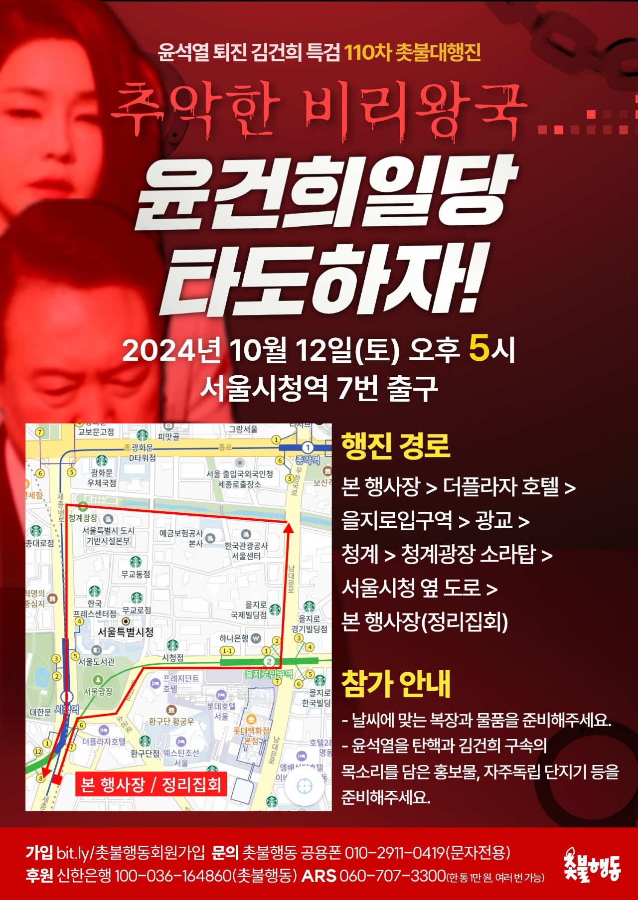 10월12일(토) 윤석열 퇴진 김건희 특검 110차 촛불대행진 집회 일정