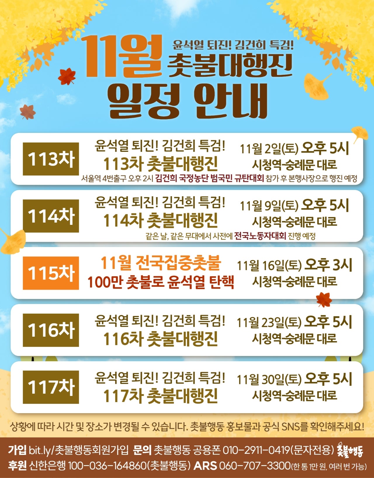 11월16일(토) 윤석열 퇴진 김건희 특검전국집중촛불115차 촛불대행진 일정 https://tadream.tistory.com/36512