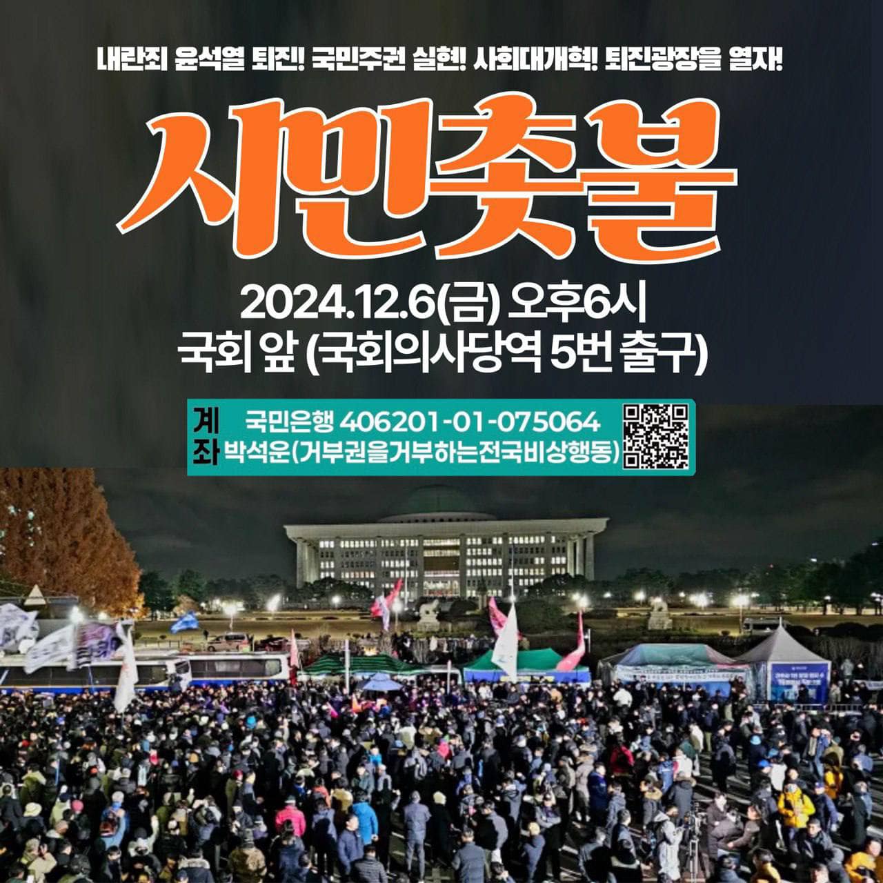 서울 12월6일(금) 6시 국회 앞 (국회의사당역 5번 출구) 시민촛불