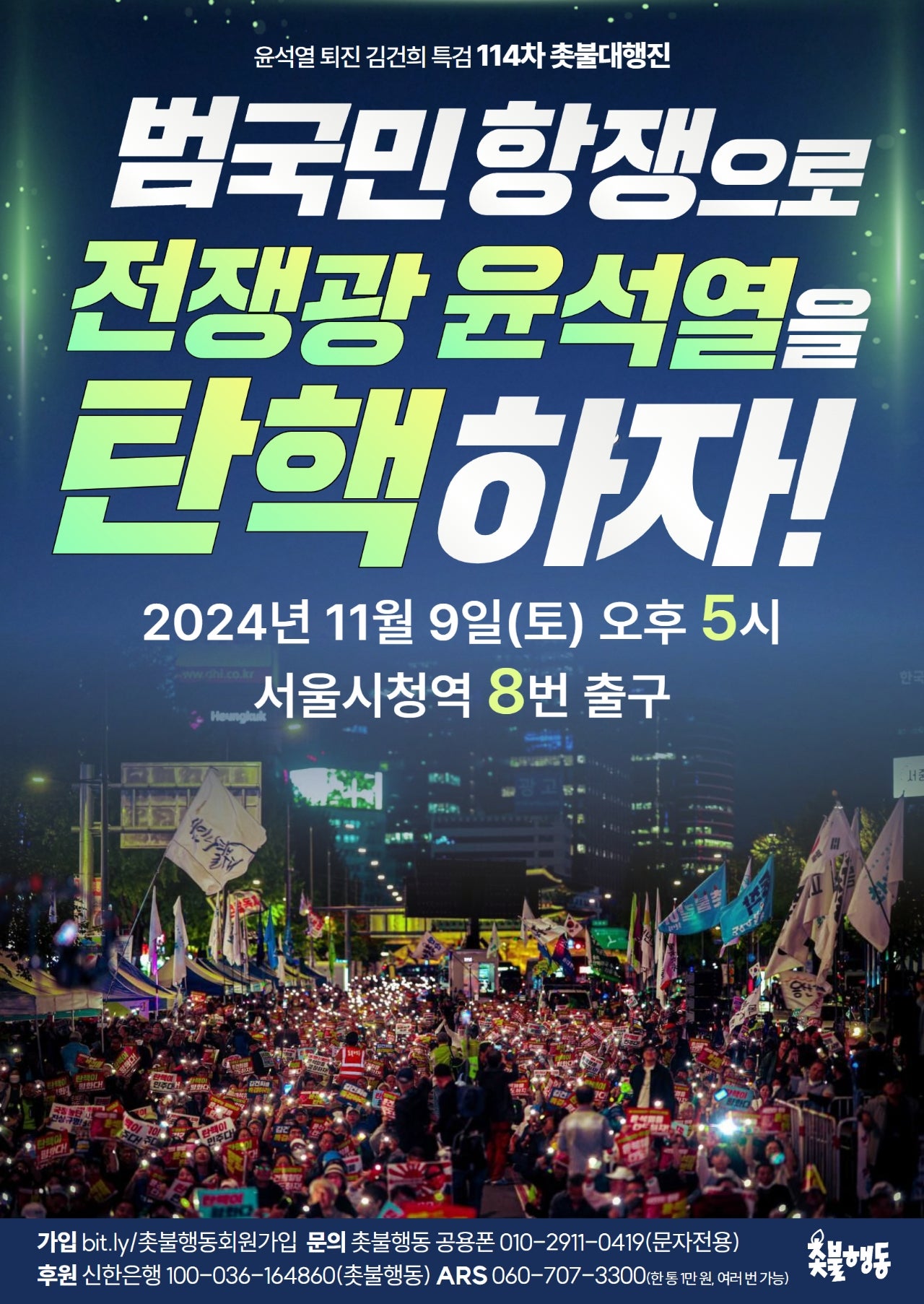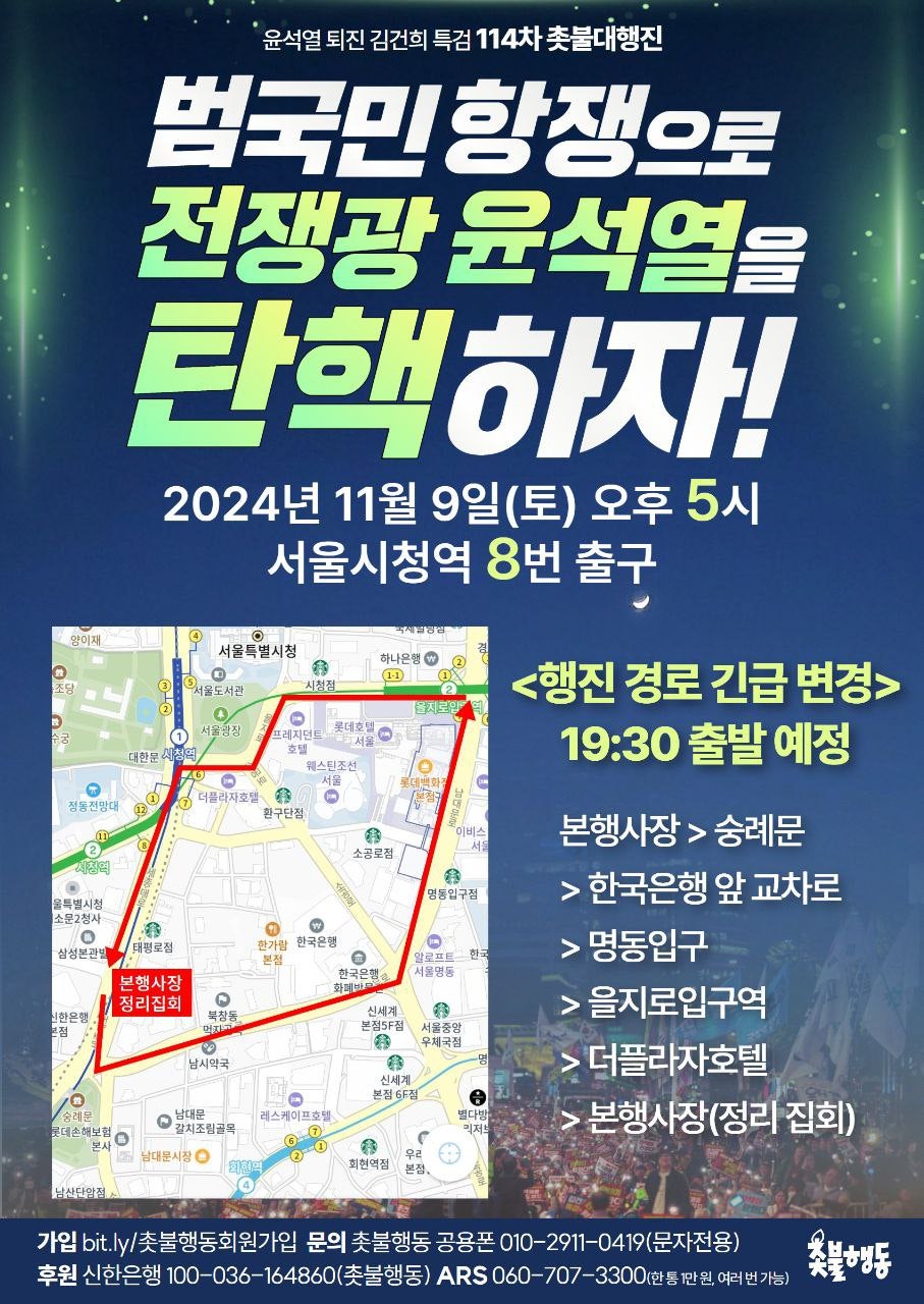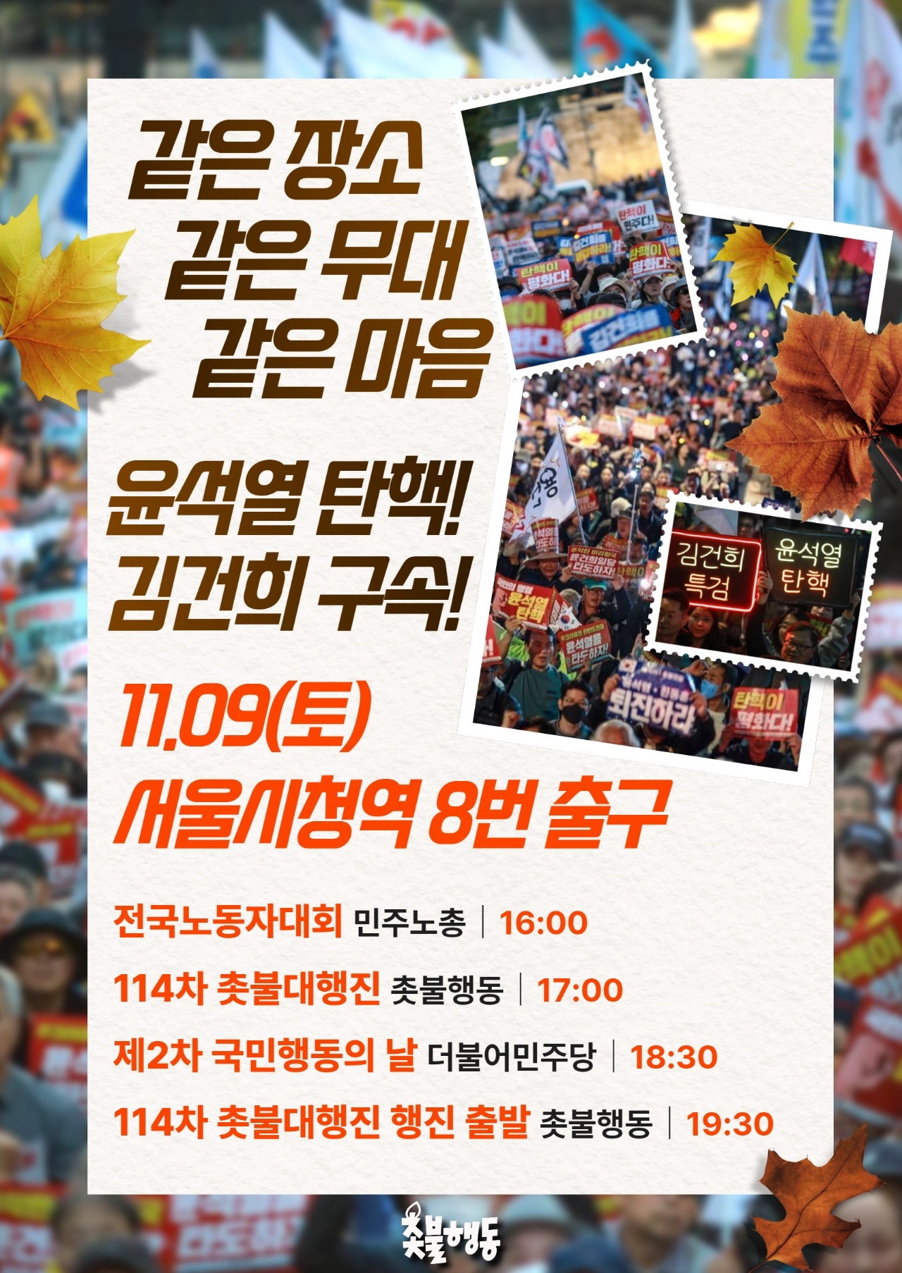 11월9일(토) 윤석열 퇴진 김건희 특검 114차 촛불대행진 집회 일정