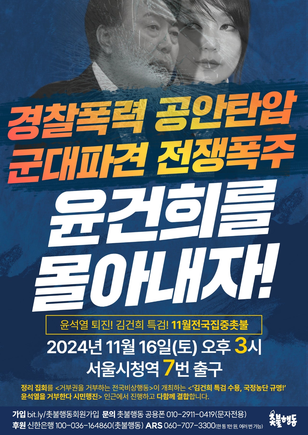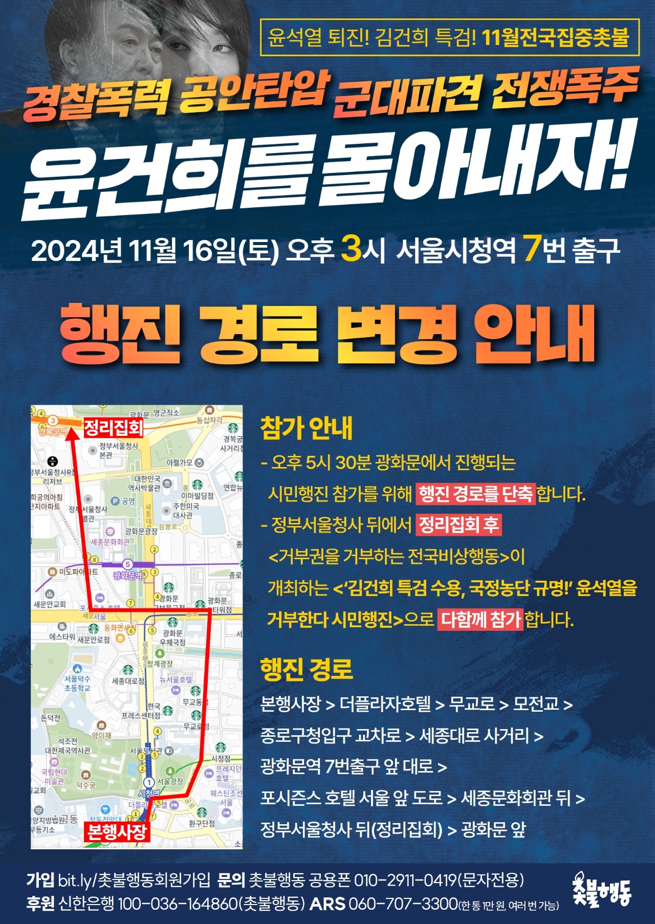 서울 11월16일(토) 3시 시청역 7번 출구 윤석열퇴진 김건희특검 11월 전국집중 115차 촛불대행진