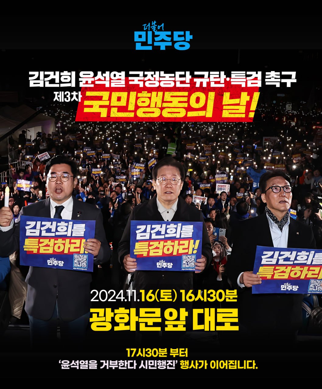서울 11월16일(토) 4시30분 광화문 앞 대로 김건희 윤석열 국정농단 규탄 특검촉구 3차 국민행동의 날 (민주당)