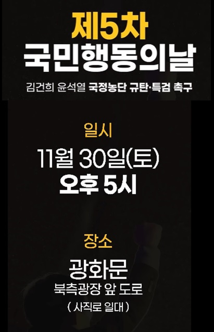 11월30일(토) 윤석열 퇴진 김건희 특검 117차 촛불대행진 집회 전국 일정 https://tadream.tistory.com/36765