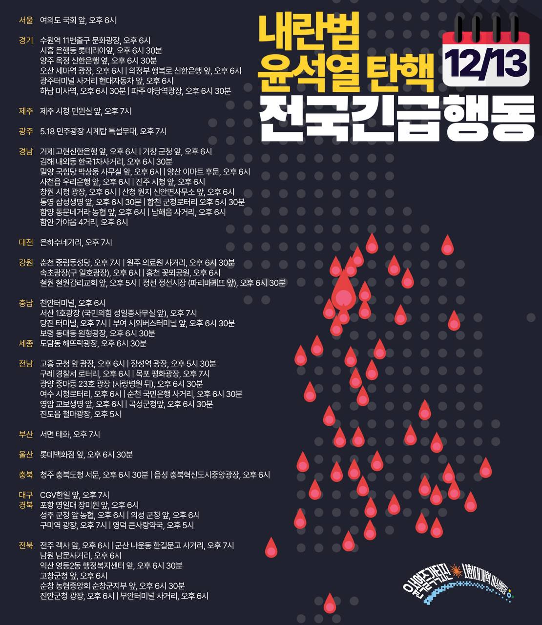 12월13일(금) 윤석열 퇴진 촛불집회 전국 일정