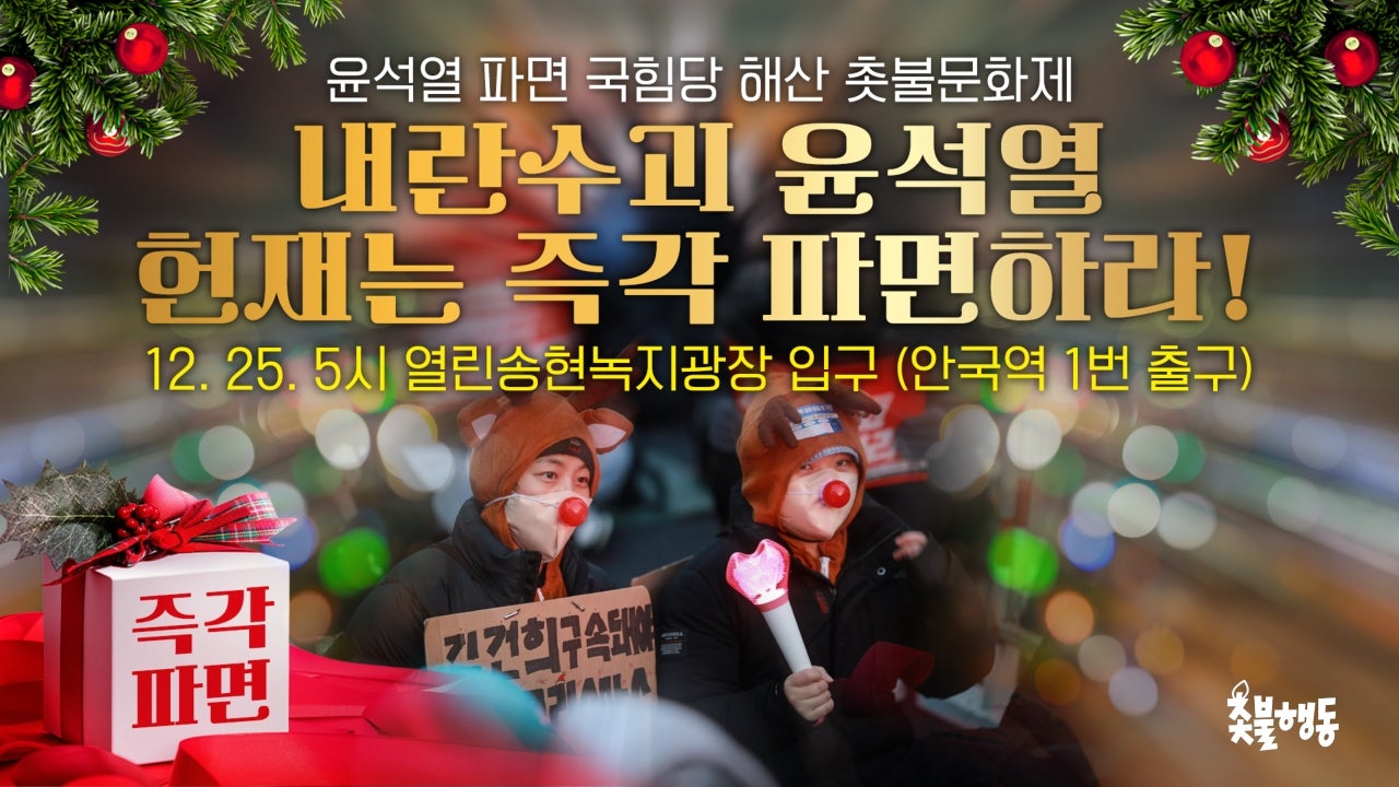 서울 12월25일(수) 5시 안국역 1번 출구 (열린송현녹지광장 입구) 윤석열 파면 국힘당 해산 촛불문화제