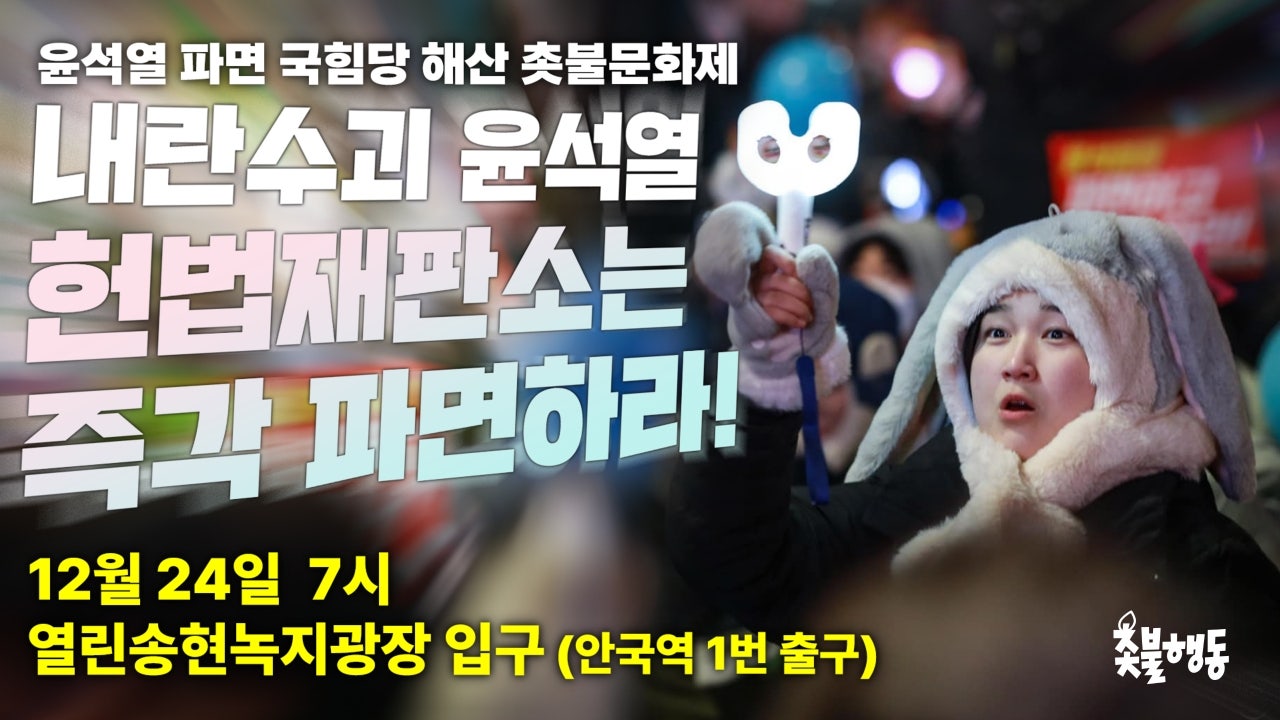 서울 12월24일(화) 7시 안국역 1번 출구 (열린송현녹지광장 입구) 윤석열 파면 국힘당 해산 촛불문화제