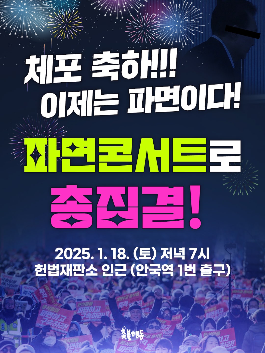 1월18일(토) 7시 헌법재판소 인근 윤석열 파면 124차 전국집중 촛불문화제 집회 일정