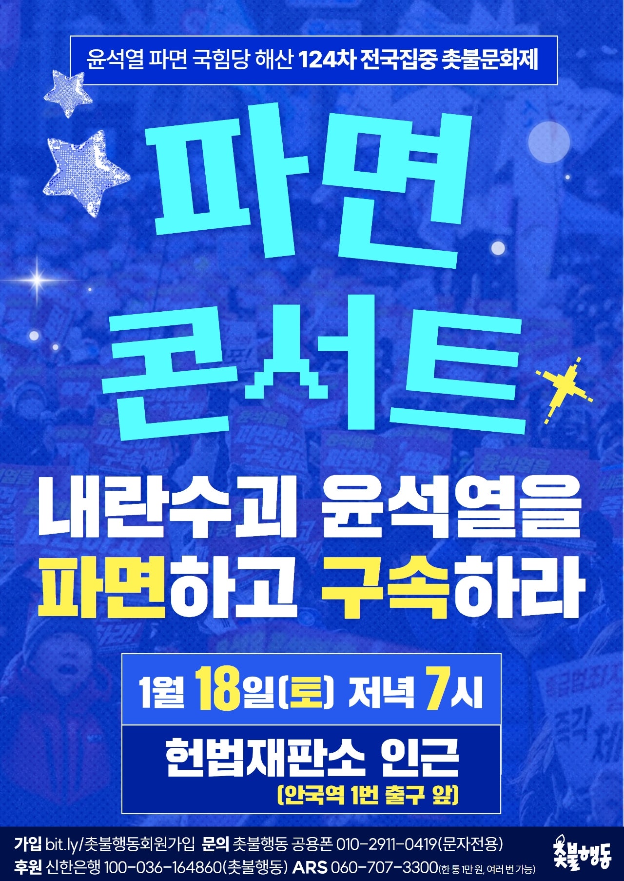 서울 1월18일(토) 7시 헌법재판소 인근(안국역 1번 출구 앞) 윤석열 파면 124차 전국집중 촛불문화제