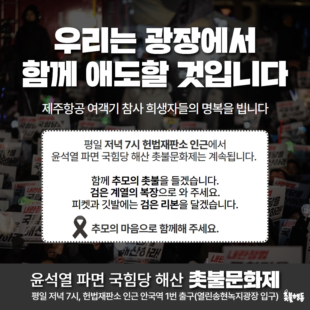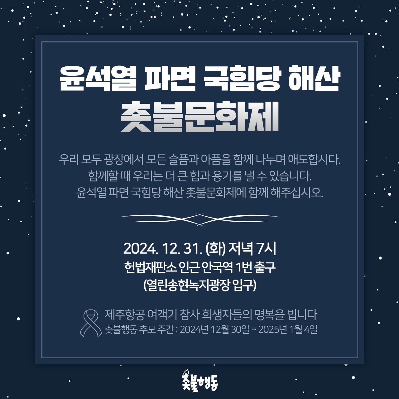 서울 12월31일(화) 7시 헌법재판소 앞 (안국역 1번 출구) 윤석열 파면 국힘당 해산 촛불문화제
