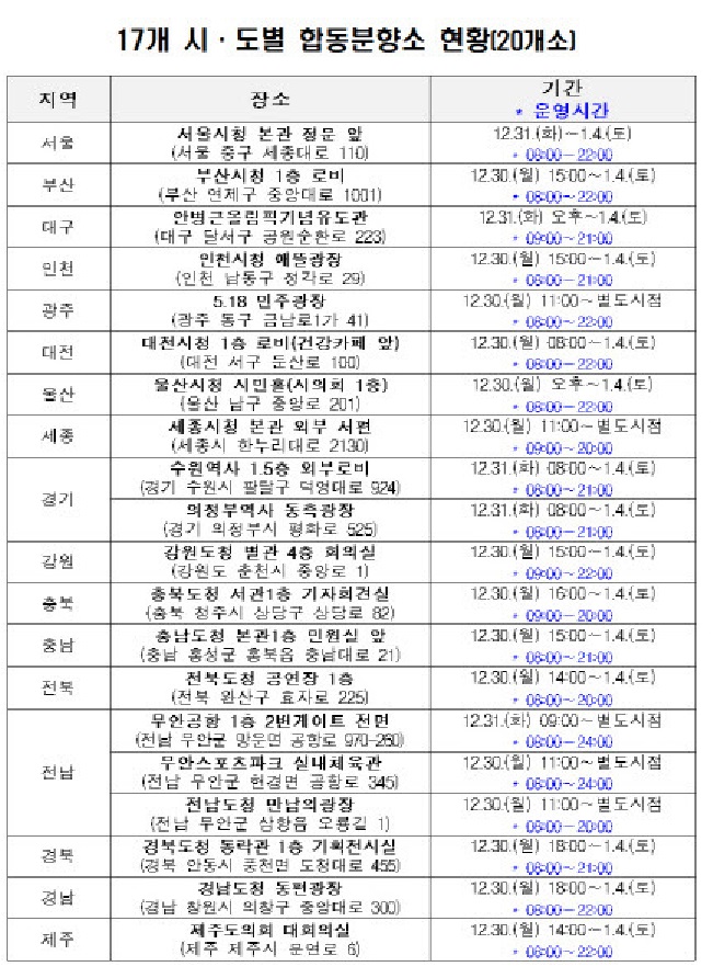 * 전남지역 일부 지역은 분향소 연장 운영이 예고된지라 확인중입니다.