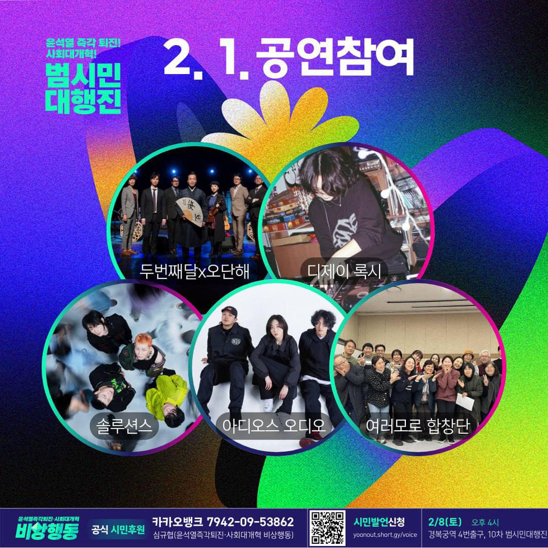 2월1일(토) 4시 광화문 윤석열 즉각 퇴진 범시민대행진 집회 일정