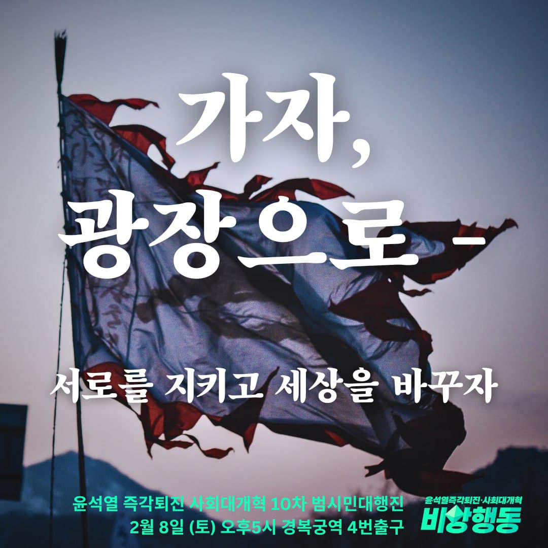 서울 2월8일(토) 5시 광화문 (경복궁역 4번출구) 윤석열 파면 10차 범시민대행진 --> 시간 변경