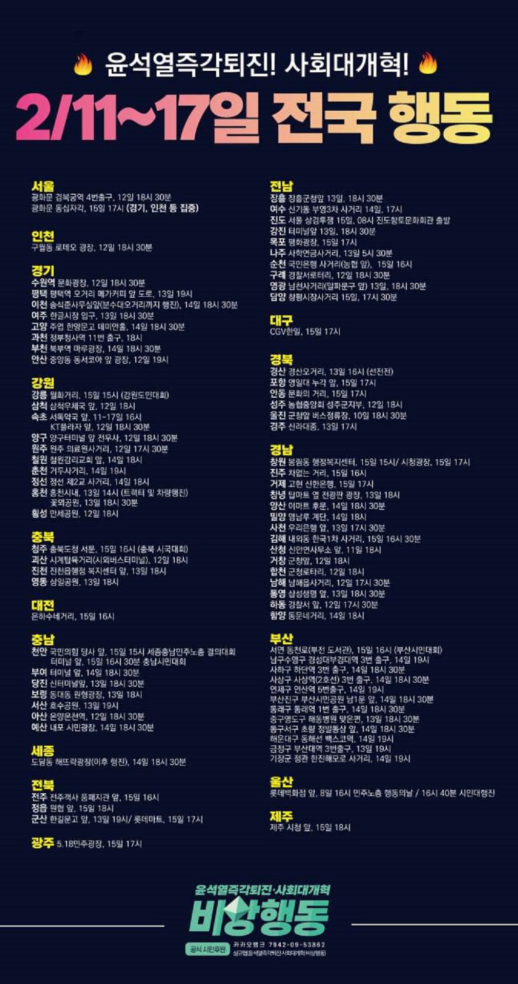 2월12일(수) 윤석열 탄핵 촛불집회 전국 일정