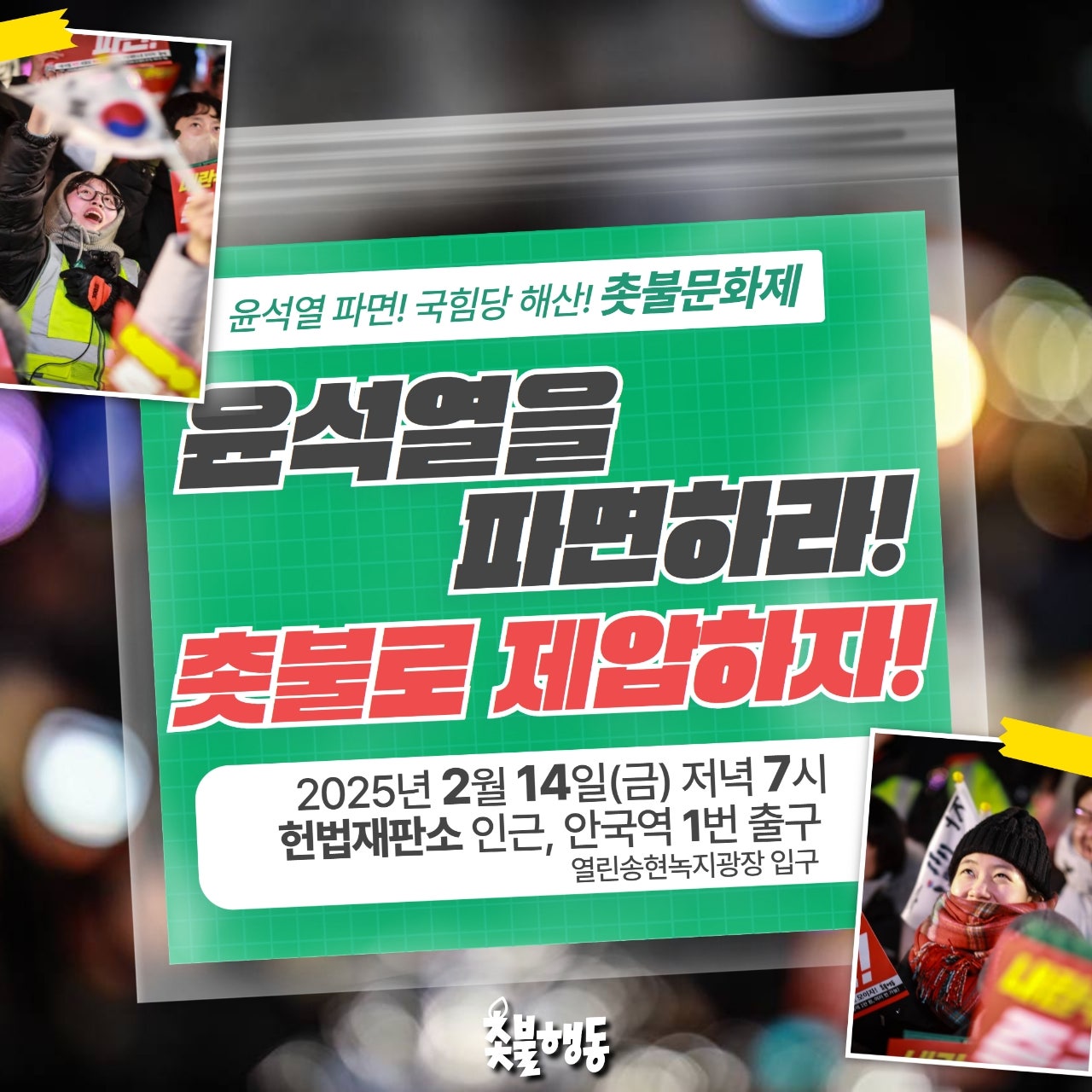 서울 평일 7시 헌법재판소 인근 (안국역 1번 출구) 윤석열 파면 국힘당 해산 촛불문화제