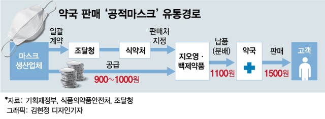 약국 유통채널로 선정된 지오영·백제약품은 정부가 계약한 마스크 생산업체로부터 물건을 직접 받아 전국의 약국 2만3000여곳에 납품한다.