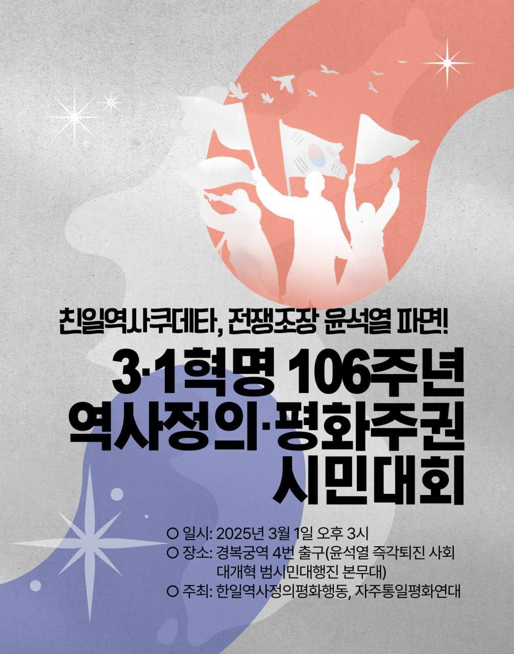서울 3월1일(토) 3시 광화문 (경복궁역 4번 출구) 3.1혁명 106주년 시민대회