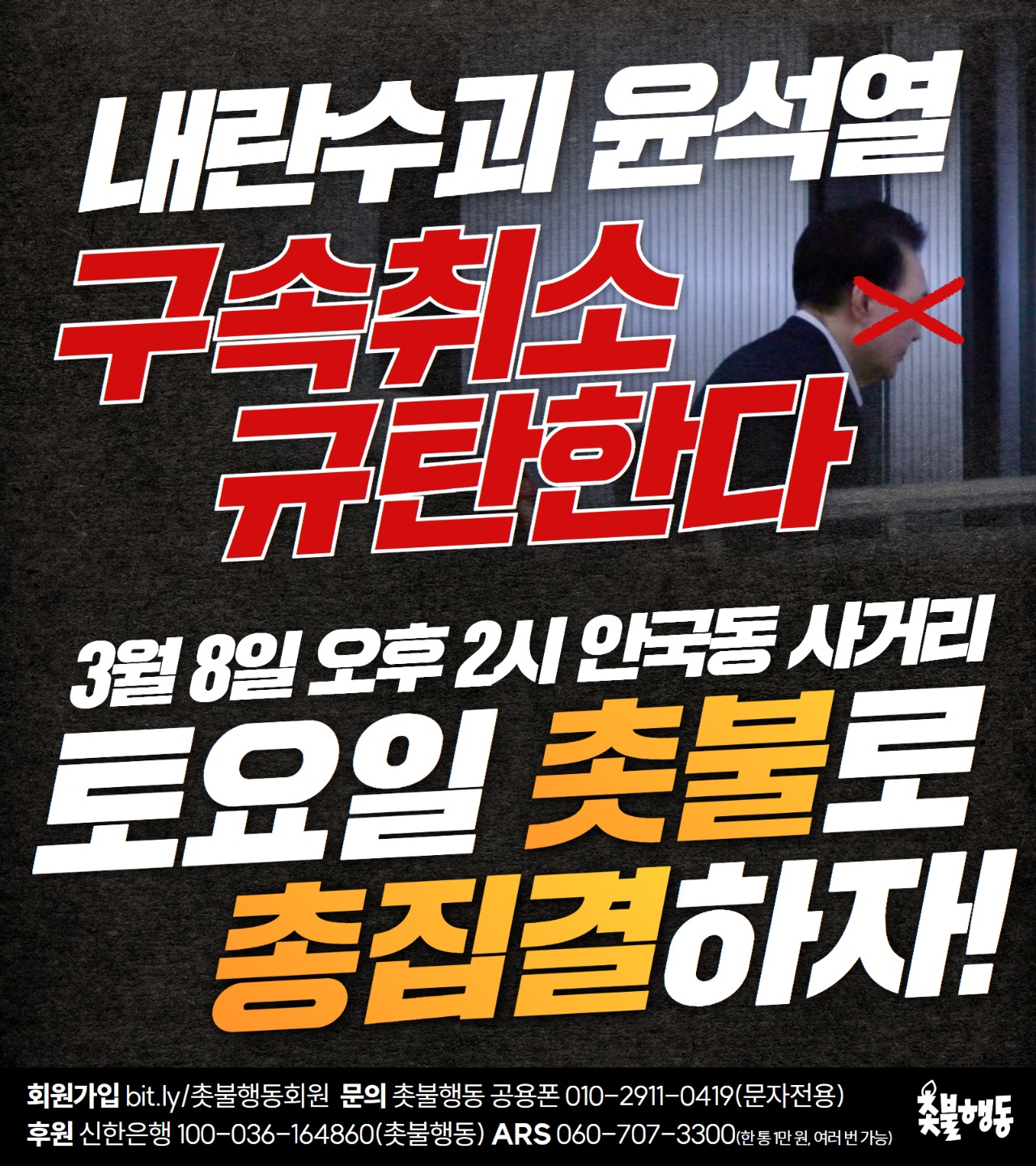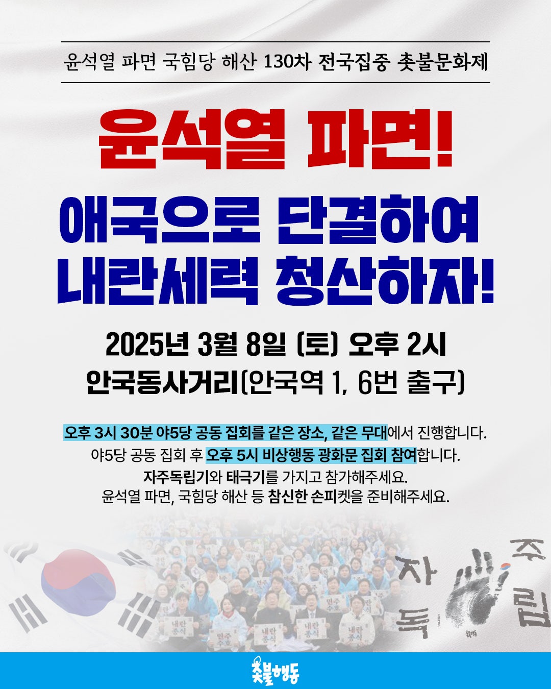 3월8일(토) 2시 안국동사거리 윤석열 파면 130차 전국집중 촛불문화제 집회 일정