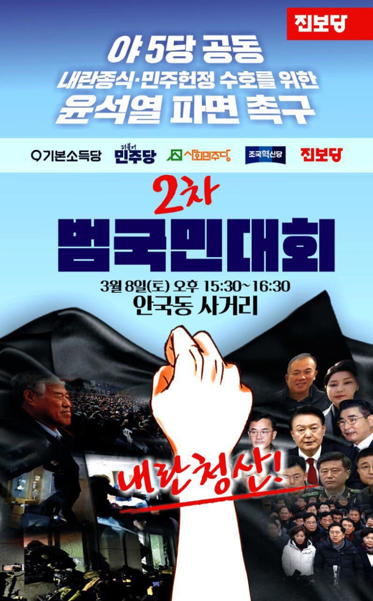 3월8일(토) 3시30분 안국동사거리 윤석열 파면 촉구 2차 범국민대회 집회 일정