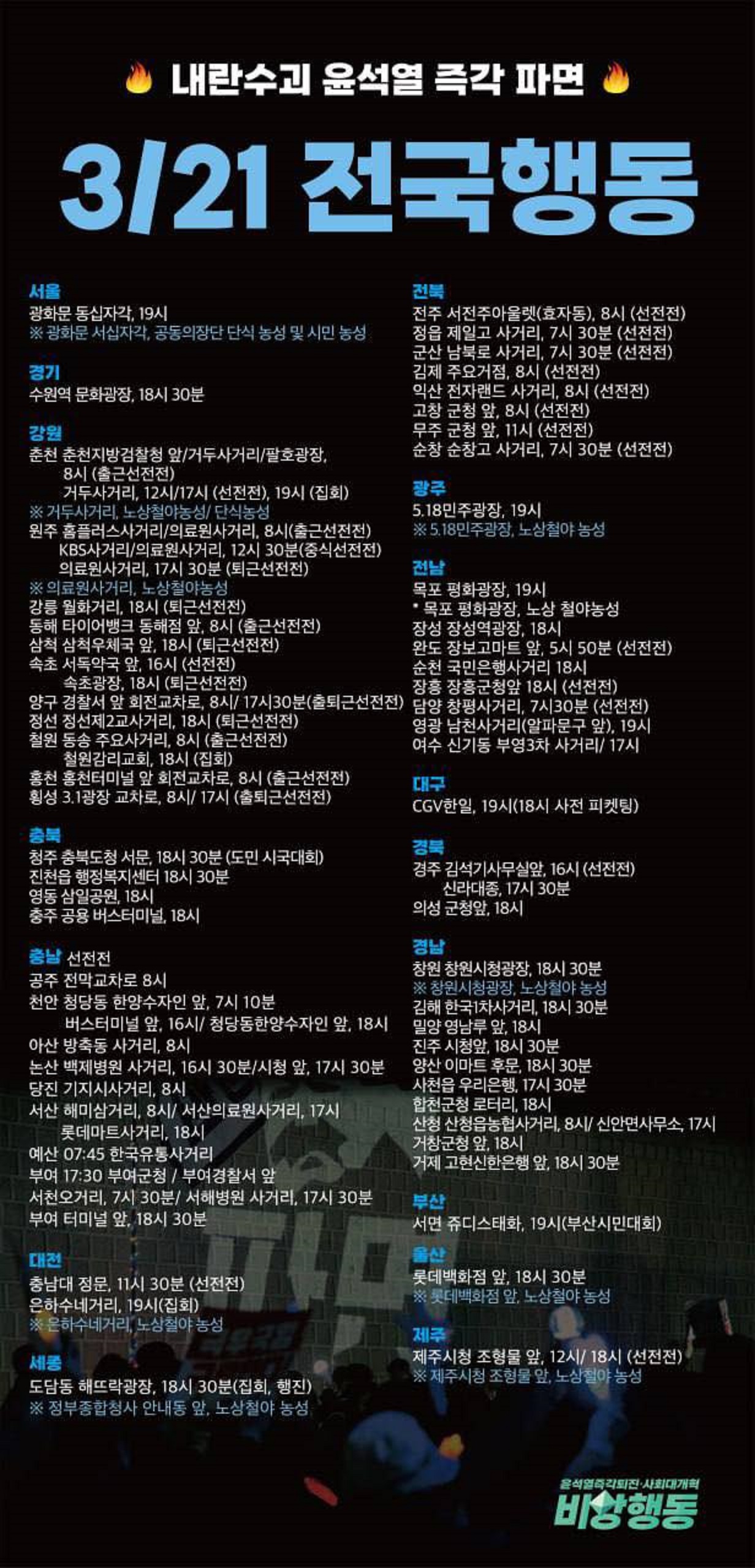 3월21일(금) 윤석열 탄핵 촛불집회 전국 일정