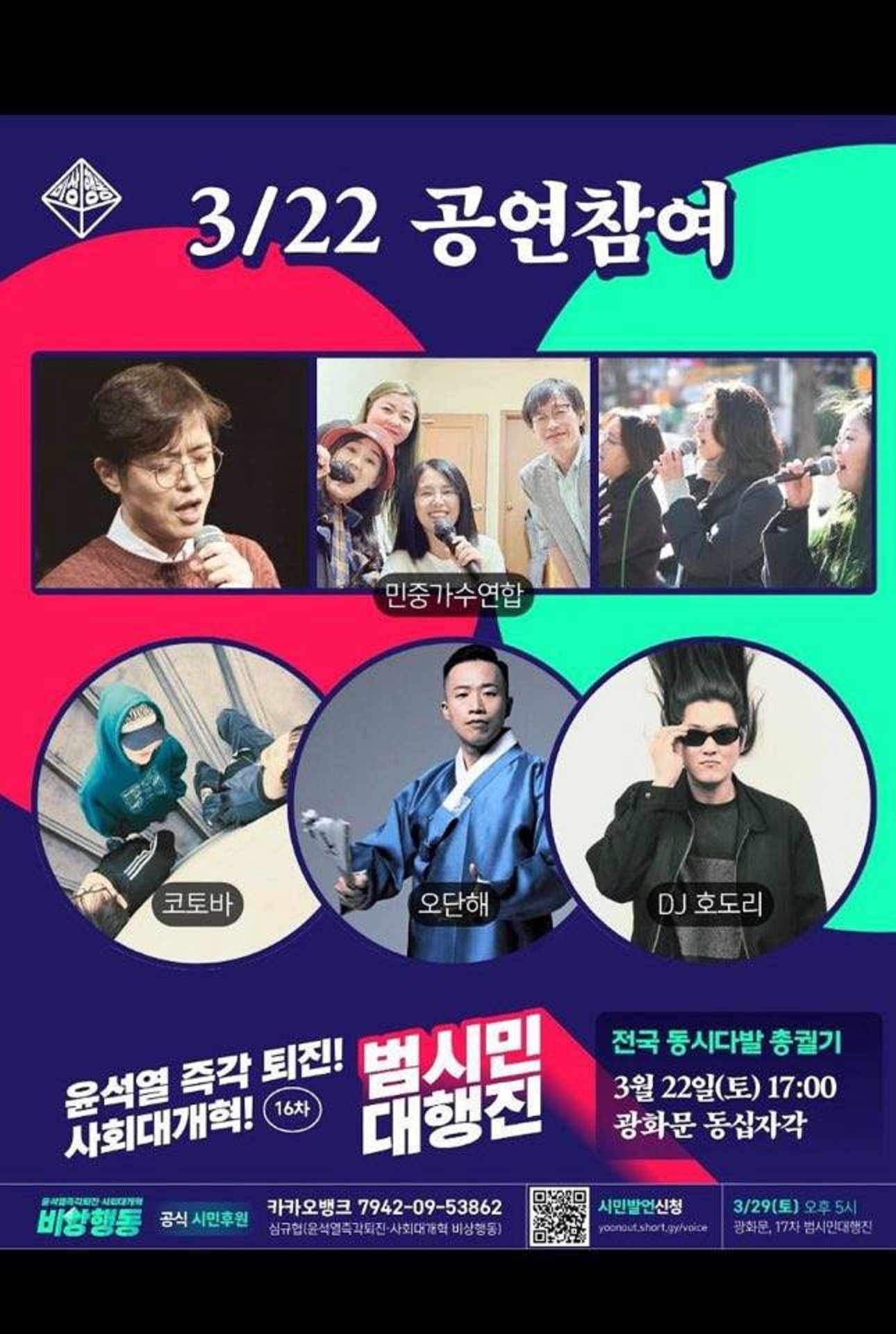 3월22일(토) 5시 광화문 윤석열 즉각 퇴진 16차 범시민대행진 집회 일정