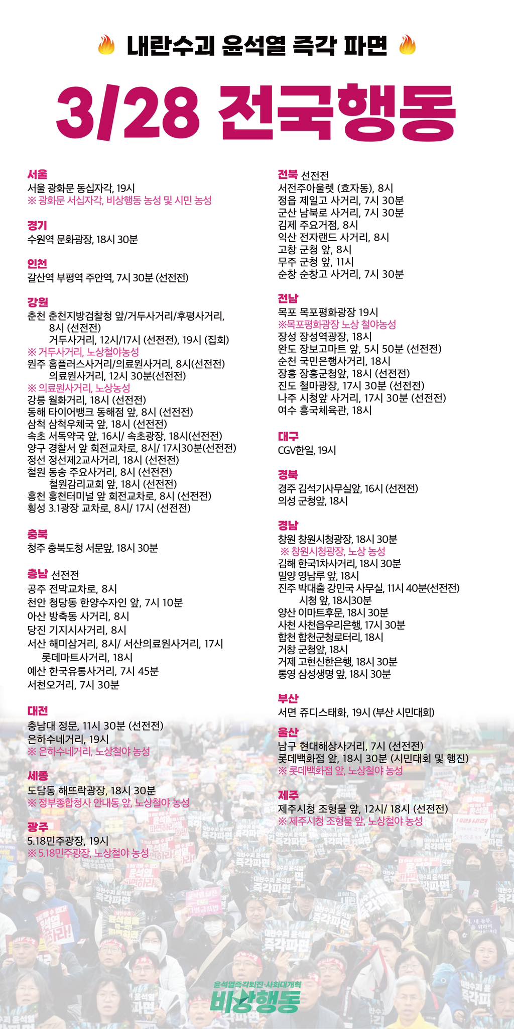 3월28일(금) 윤석열 탄핵 촛불집회 전국 일정