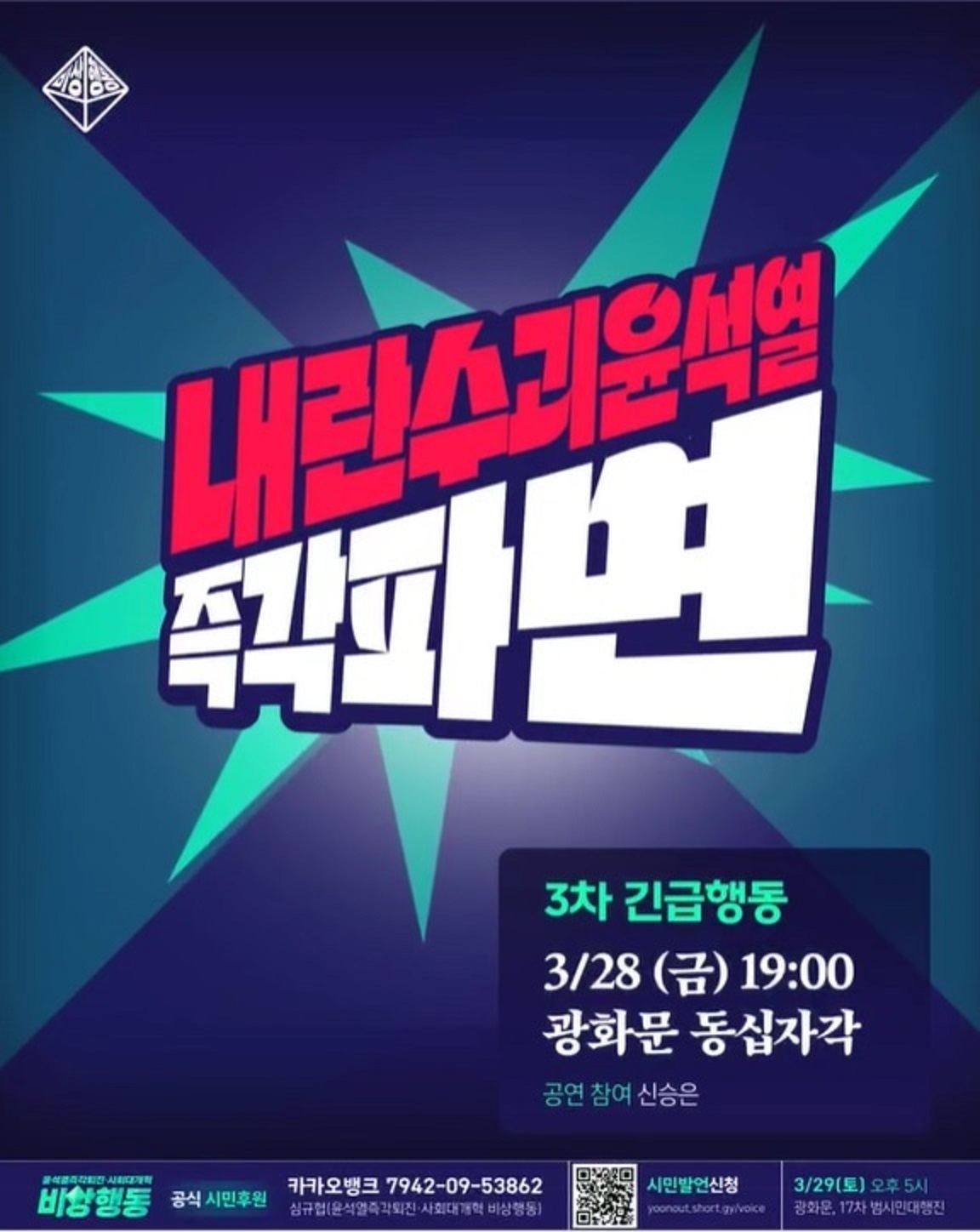 | 서울 3월29일(토) 5시 광화문 윤석열 즉각 퇴진 17차 범시민대행진 집회 일정 (0) | 2025.03.27 |