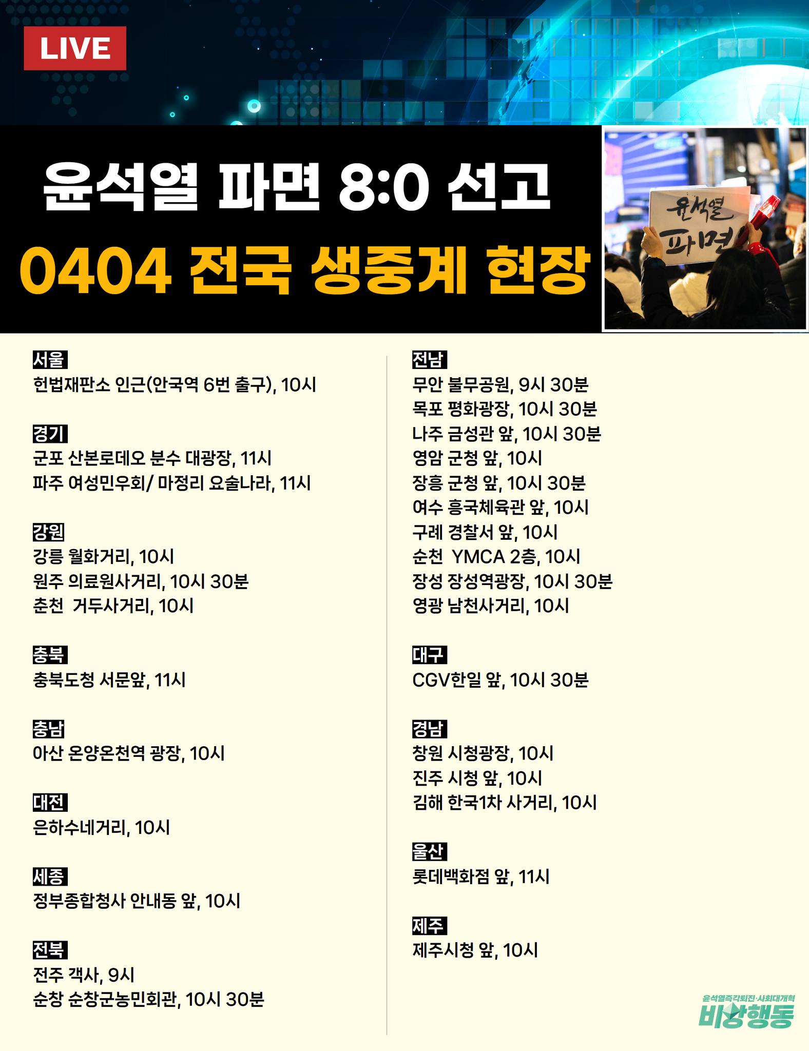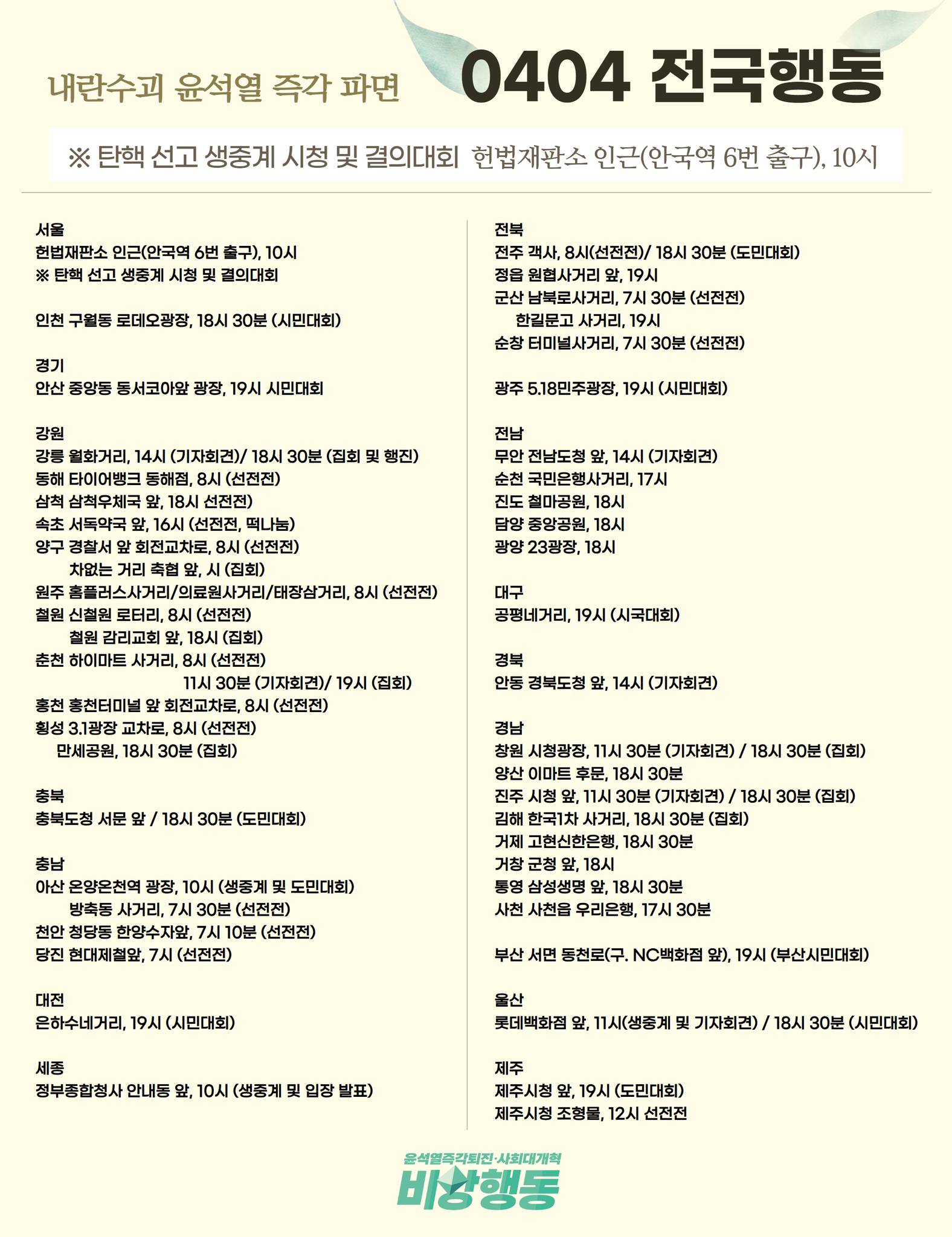 4월4일(금) 윤석열 탄핵 촛불집회 전국 일정