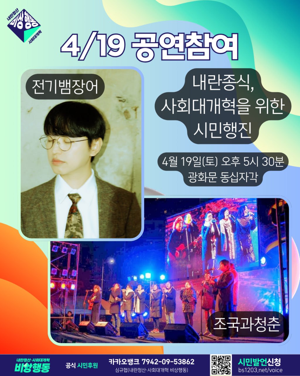 4월19일(토) 5시 광화문 내란청산 비상행동 시민행진 집회 일정