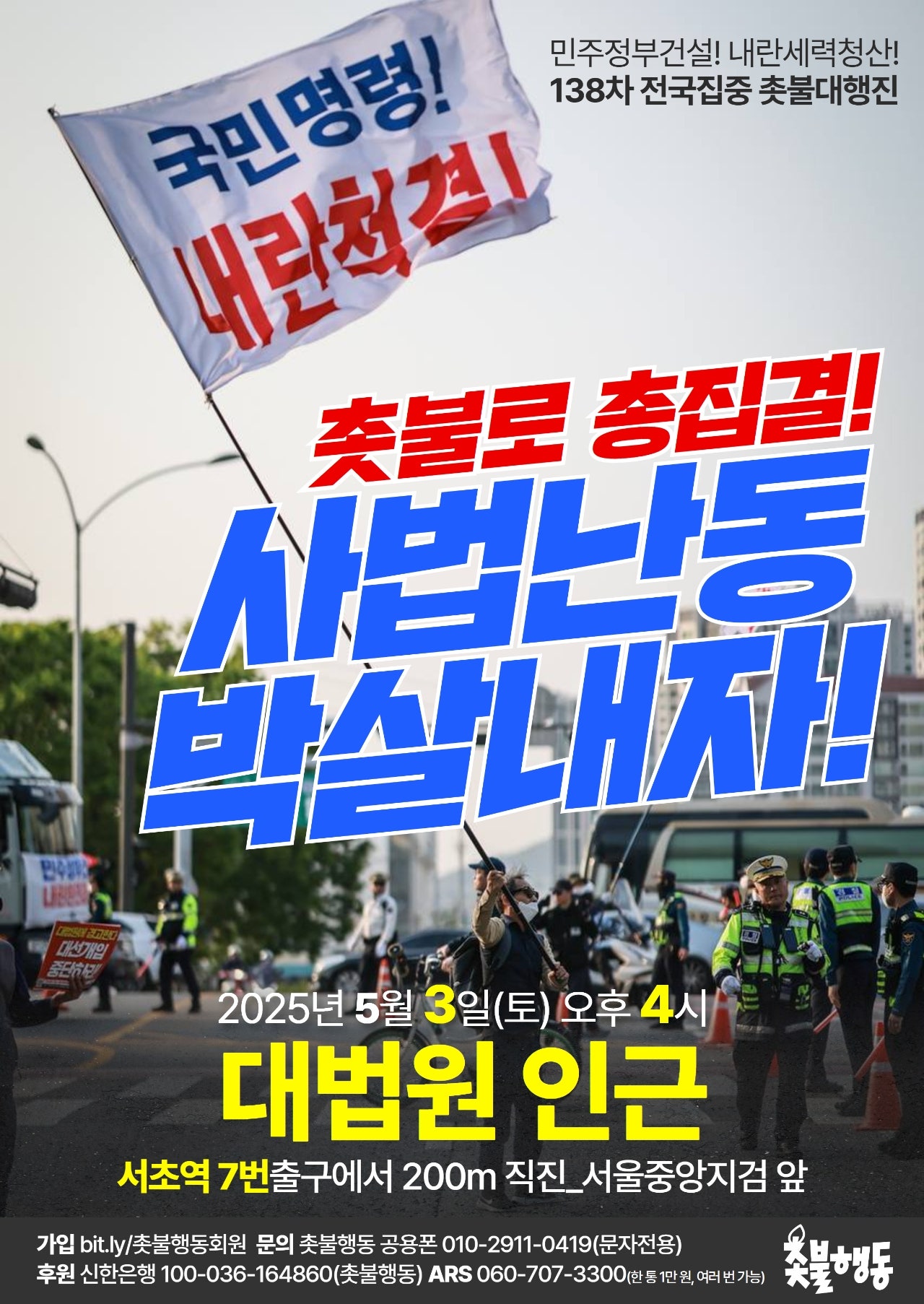 5월3일(토) 4시 대법원 인근 내란청산 138차 전국집중 촛불대행진 집회 일정