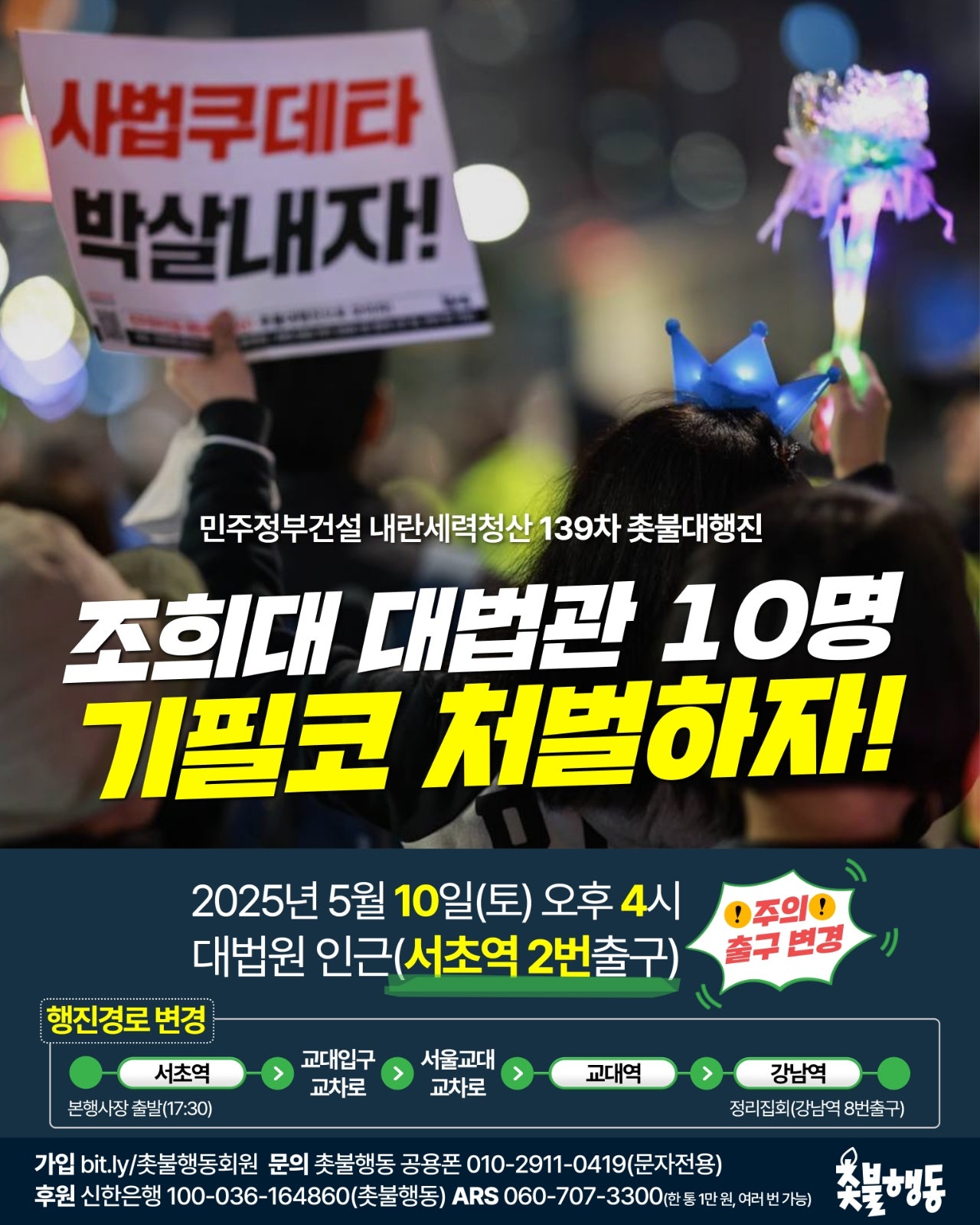 5월10일(토) 4시 대법원 인근 내란청산 139차 촛불대행진 집회 일정