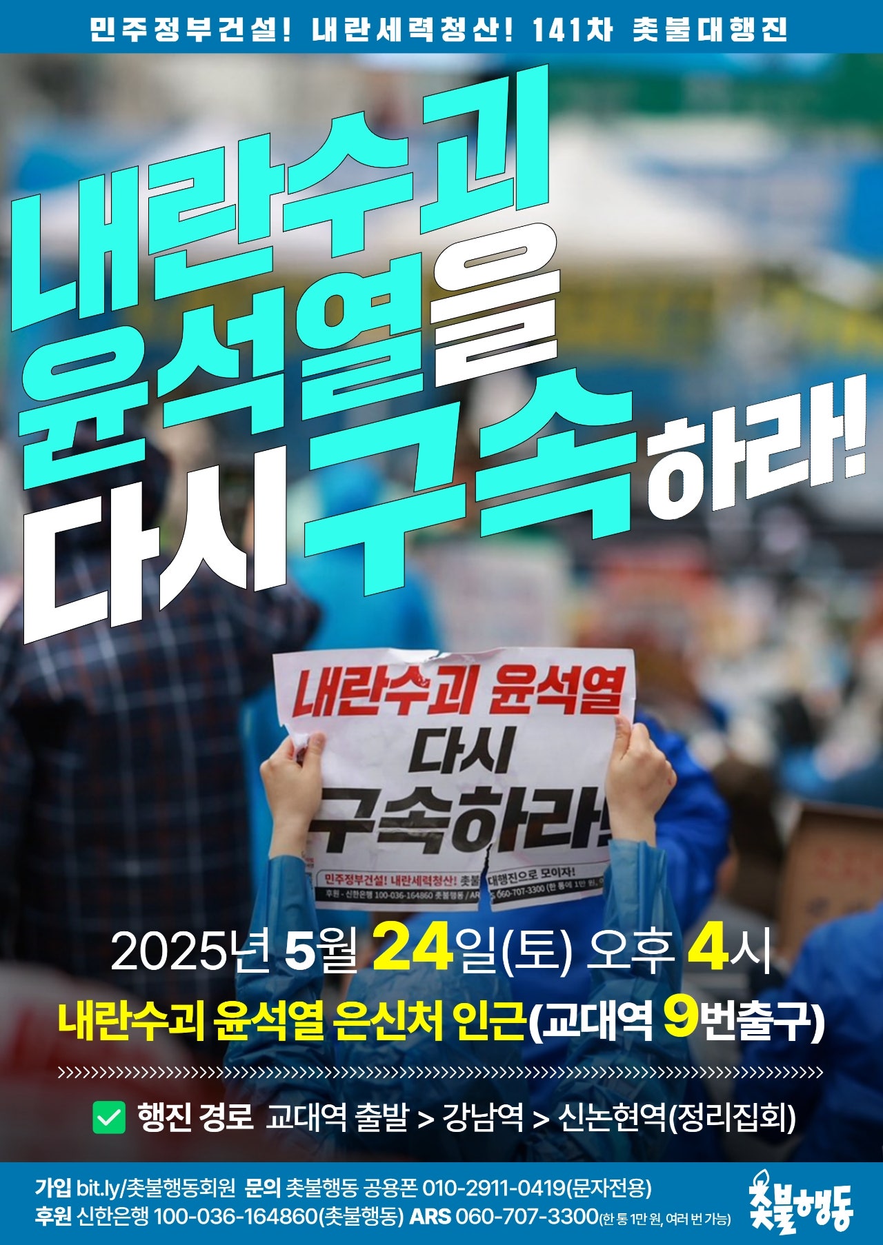 서울 5월24일(토) 4시 교대역 9번출구 내란세력청산 141차 촛불대행진