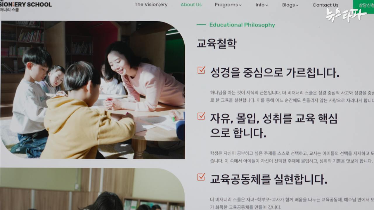 그런데 비전스쿨의 인터넷 홈페이지에 제시된 교육철학은 개신교의 경전, 즉 성경을 중심으로 가르치는 것이다. 또 비전스쿨의 비전은 '믿음의 리더를 양성해 하나님의 나라를 확장하는 것'이라고 돼 있다.