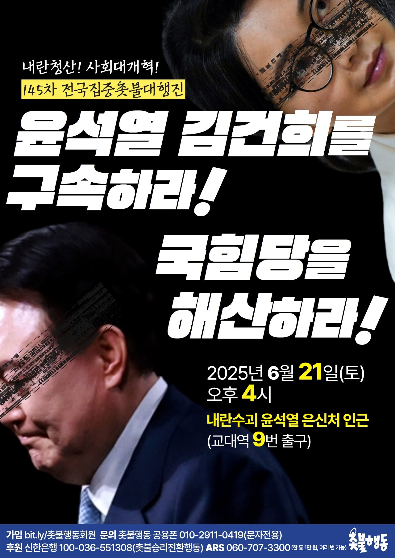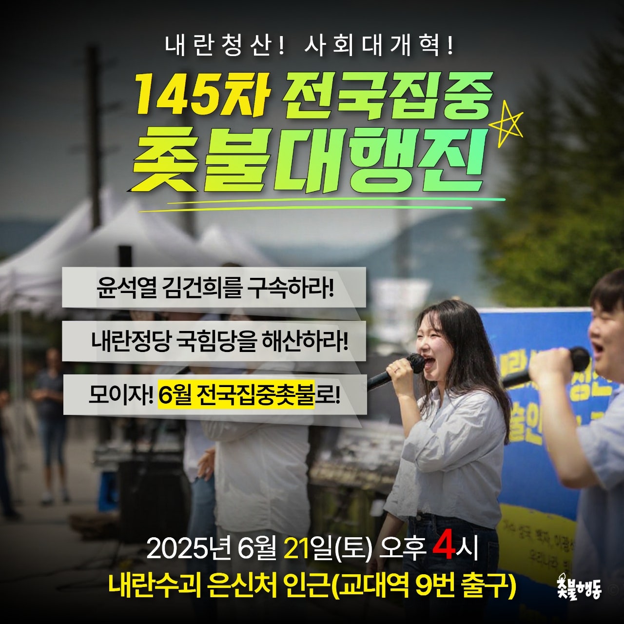 6월21일(토) 4시 교대역 내란청산 145차 전국집중 촛불대행진 집회 일정