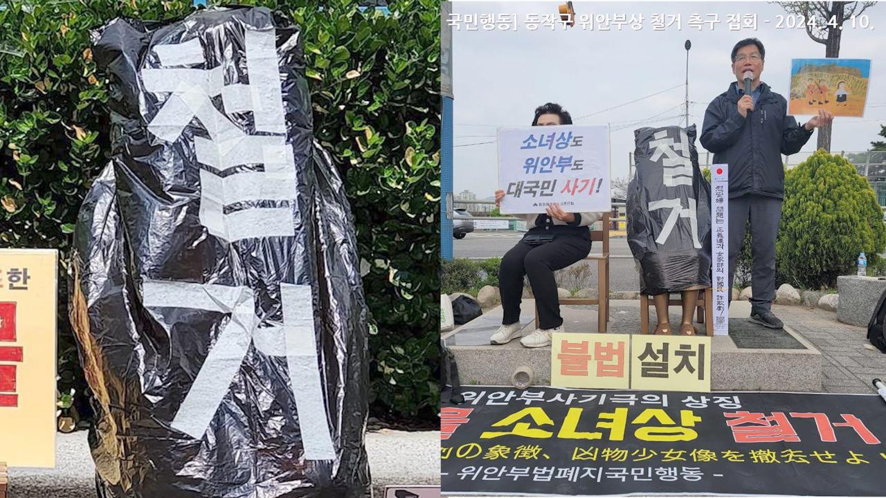 전국 150여개 소녀상을 찾아가 훼손 후 인증 사진을 찍는 모습. 오른쪽 사진은 김병헌이 81번째 찾아간 소녀상이다.
