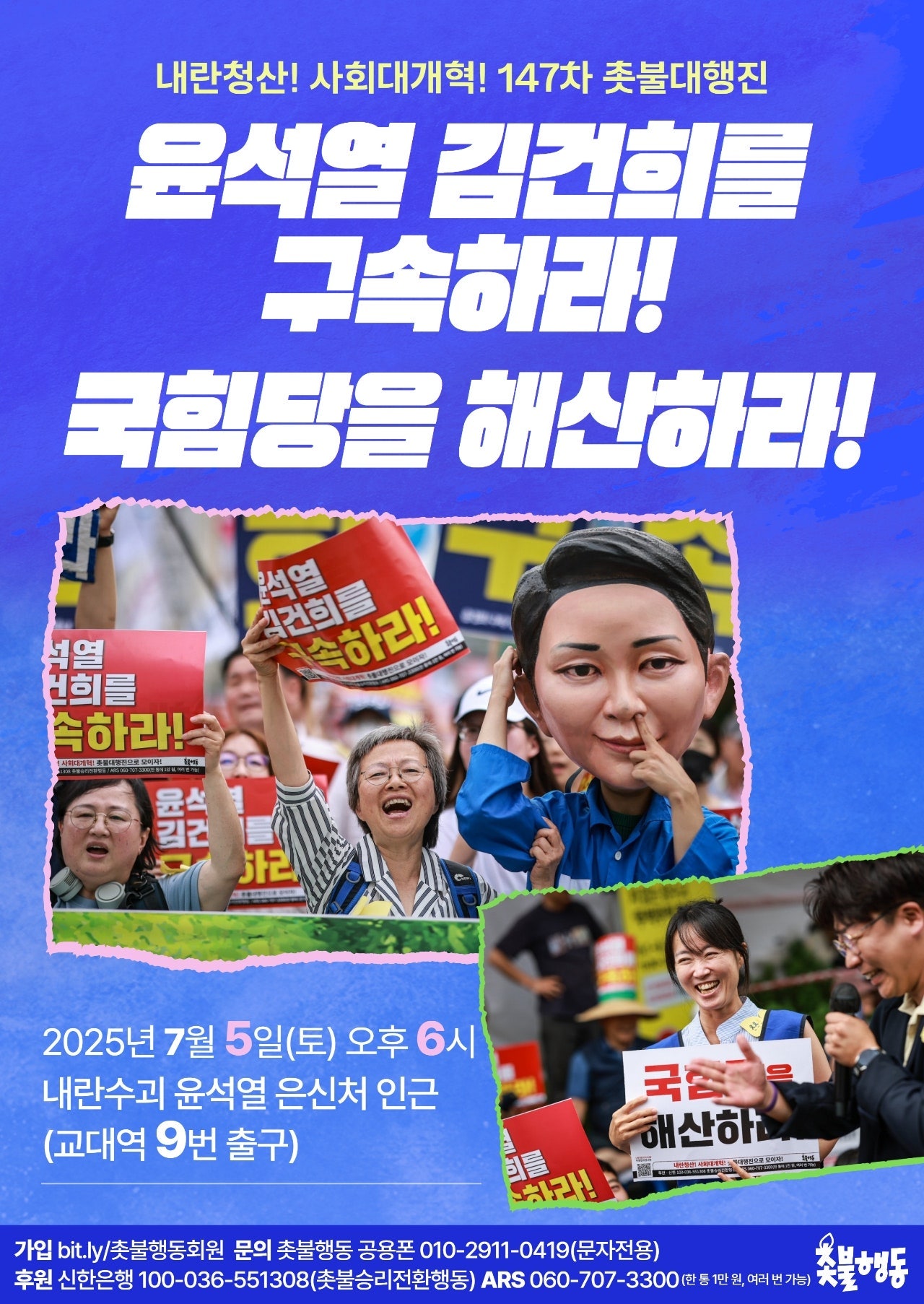 7월5일(토) 6시 교대역 내란청산 147차 촛불대행진 집회 일정