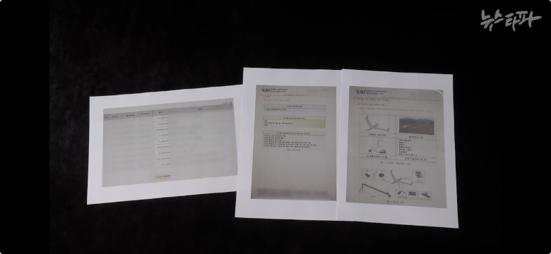 뉴스타파가 입수한 KAI 내부 문건에 따르면 2023년 4월 20일 KAI와 A사는 ‘저가형 소형 무인기’ 등 11건을 구매하는 계약을 맺었다. 계약 금액은 약 29억 원이고 항목은 ▲무인기 비행체 100대 ▲발사대 2대 ▲지상통제장비 2대 ▲운용지원장비 2조였다. 문건에는 구체적인 작업 분할 구조도와 제작 사양까지 담겨 있다.