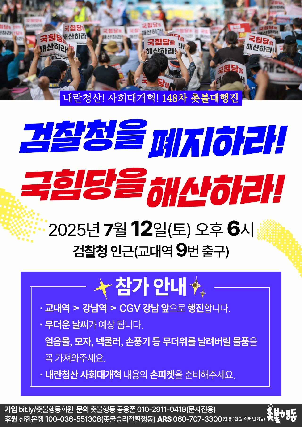 서울 7월12일(토) 6시 교대역 9번출구 내란세력청산 148차 촛불대행진