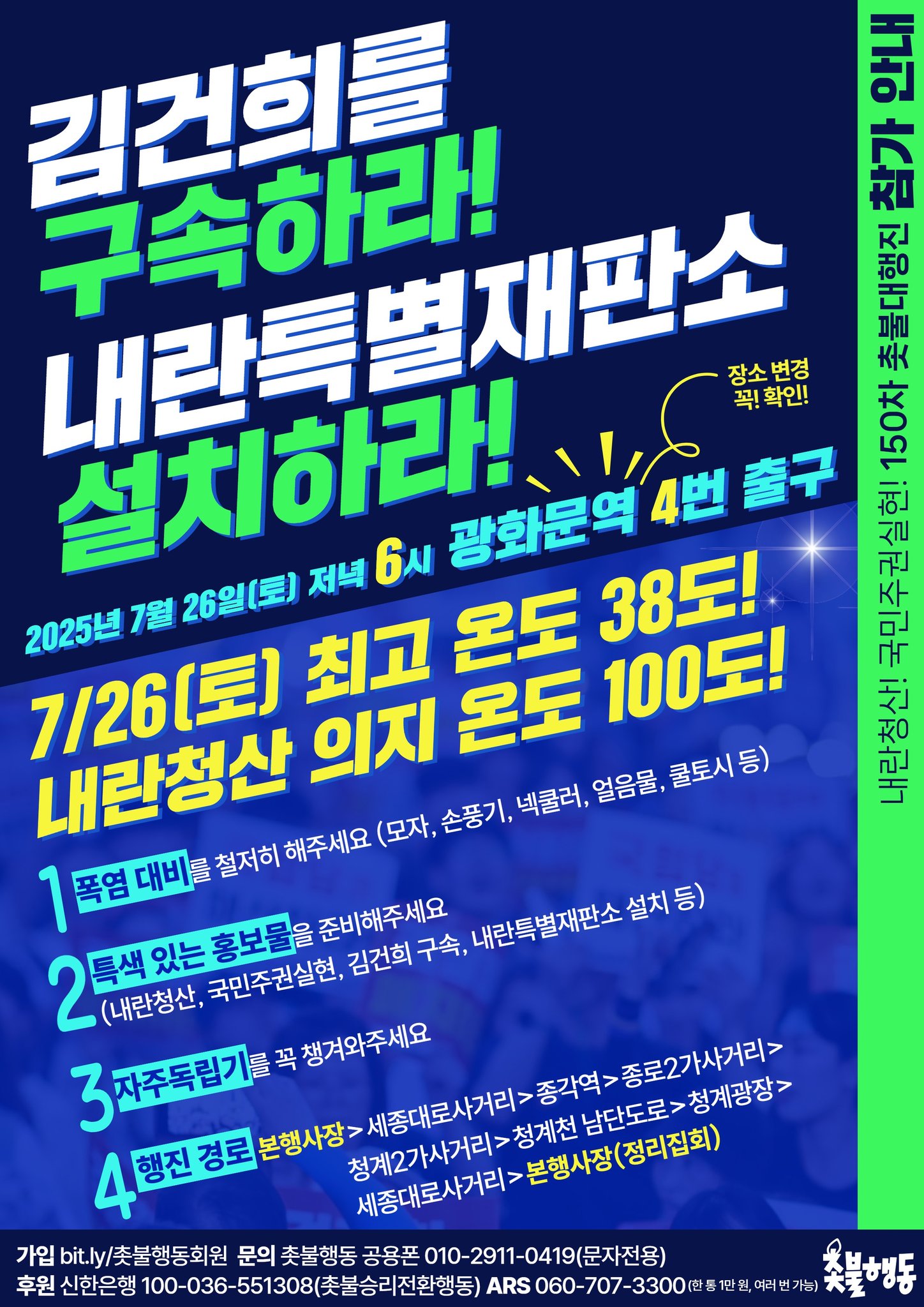 7월26일(토) 6시 광화문역 내란청산 150차 촛불대행진 집회 일정