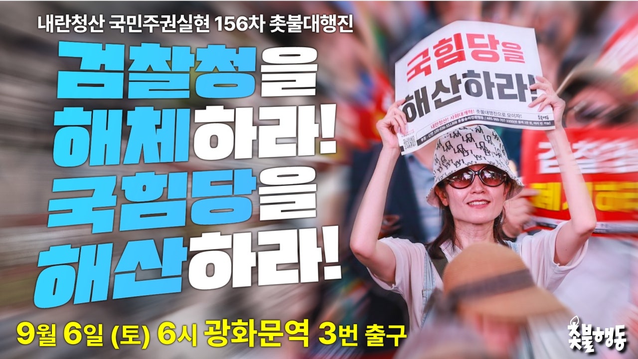 9월6일(토) 6시 광화문역 내란청산 156차 촛불대행진 집회 일정