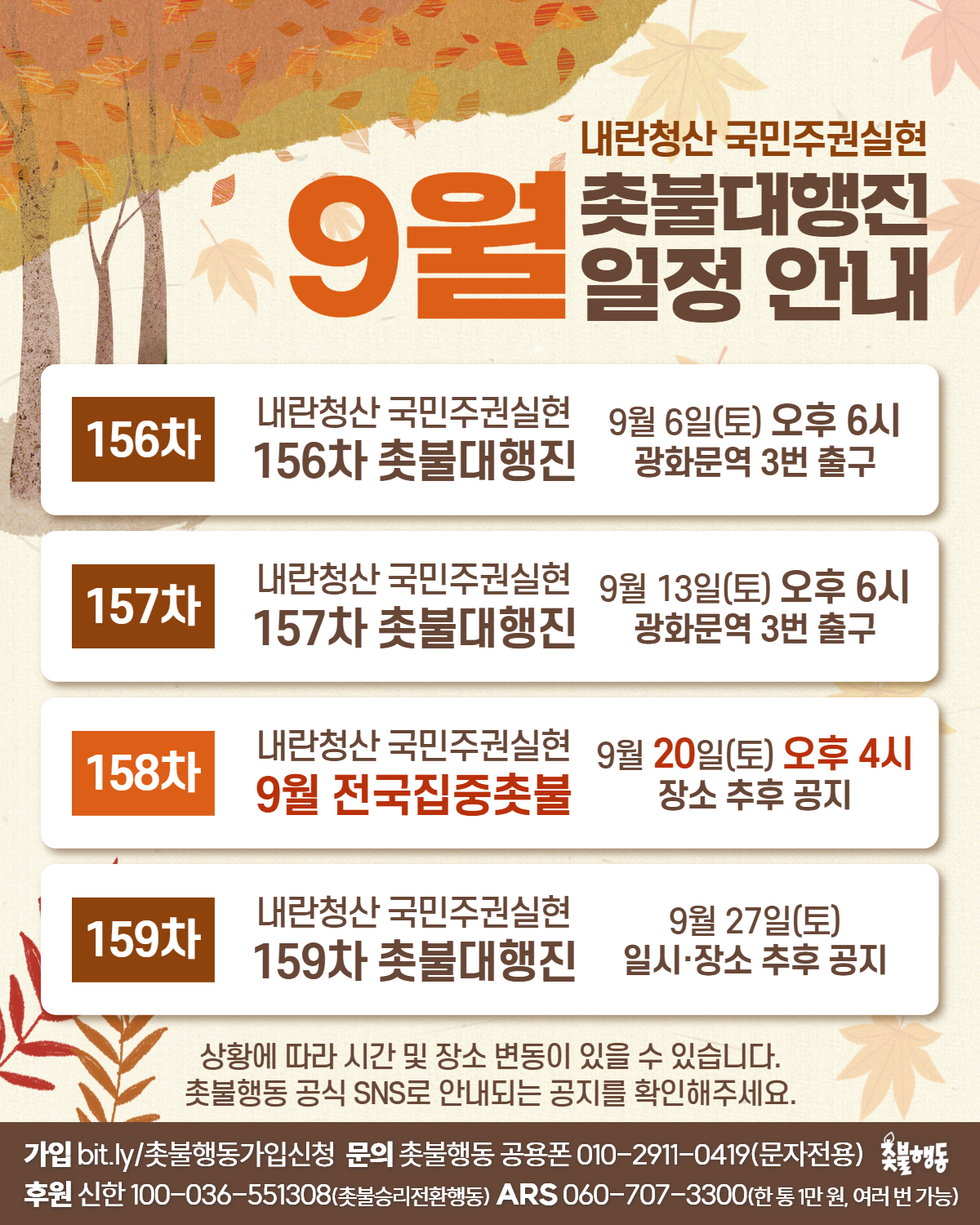 서울 9월20일(토) 4시 시청역 내란청산 158차 전국집중 촛불대행진 https://tadream.tistory.com/41516