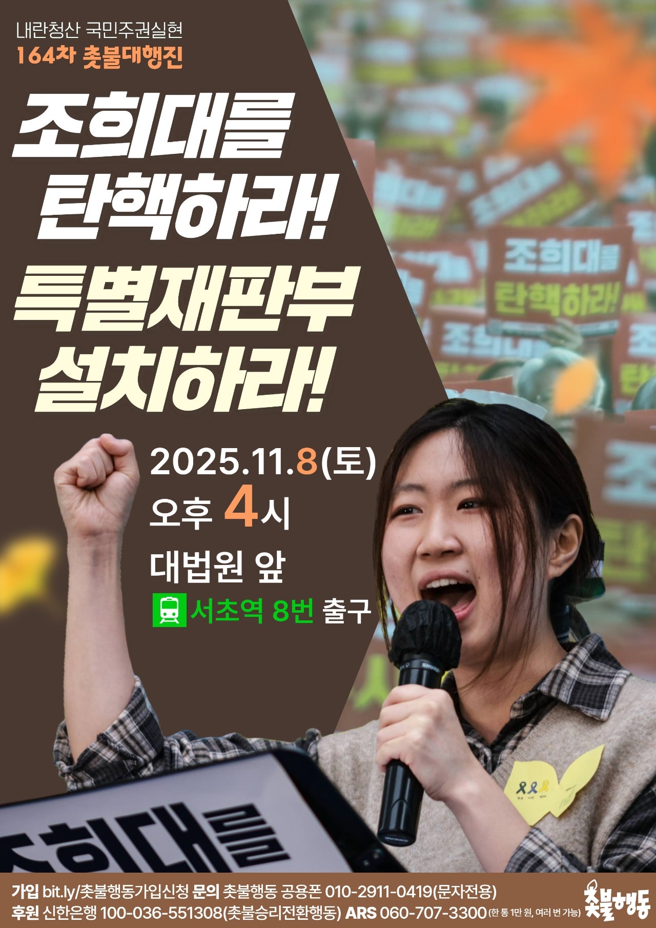 11월8일(토) 4시 대법원 앞 내란청산 164차 촛불대행진 집회 일정