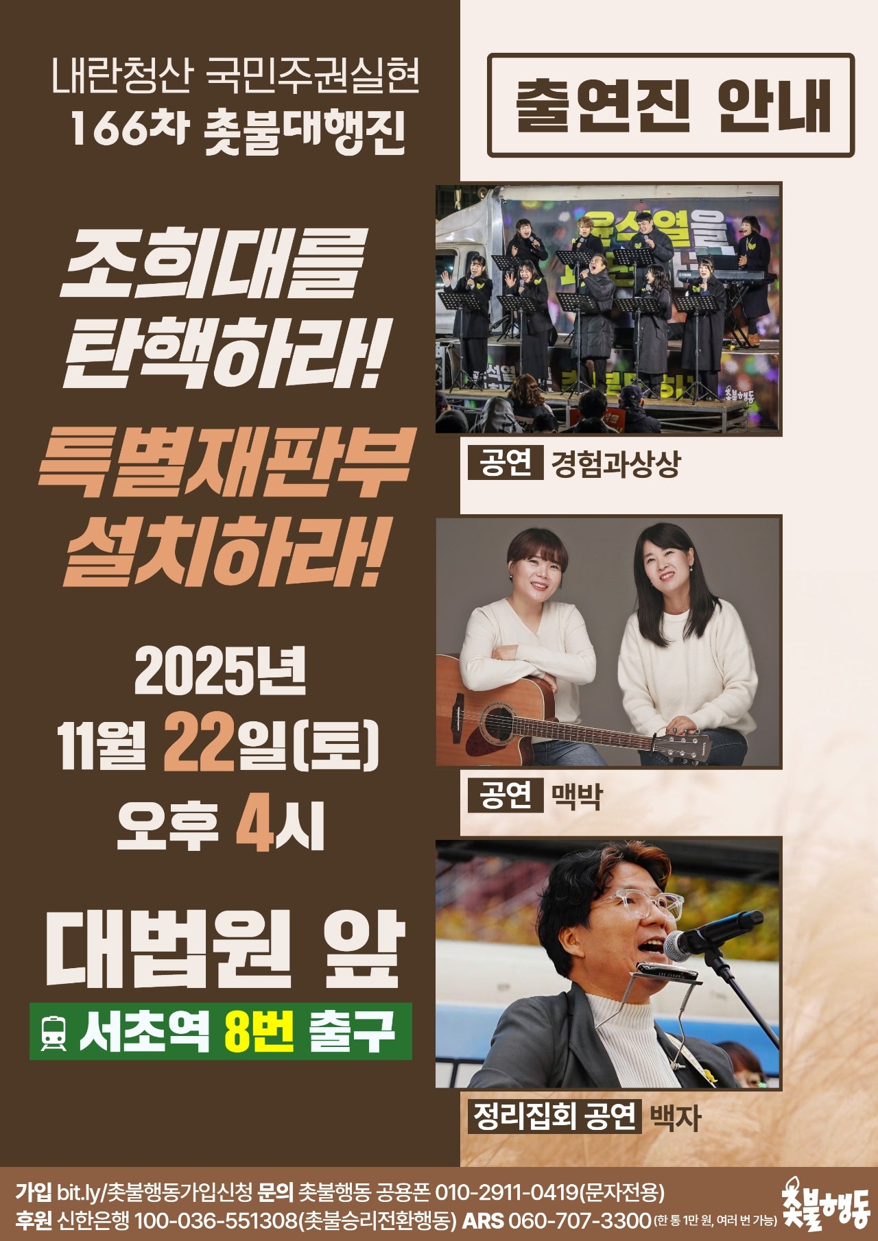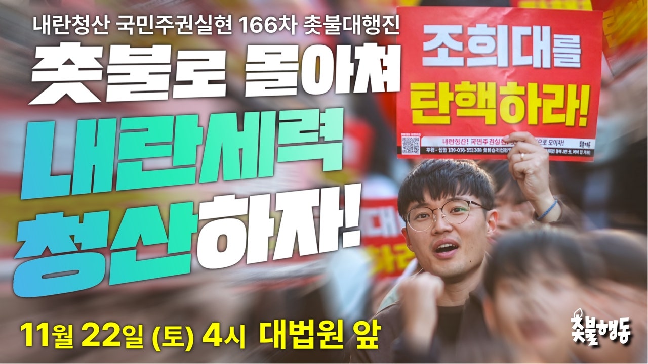 11월22일(토) 4시 대법원 앞 내란청산 166차 촛불대행진 집회 일정