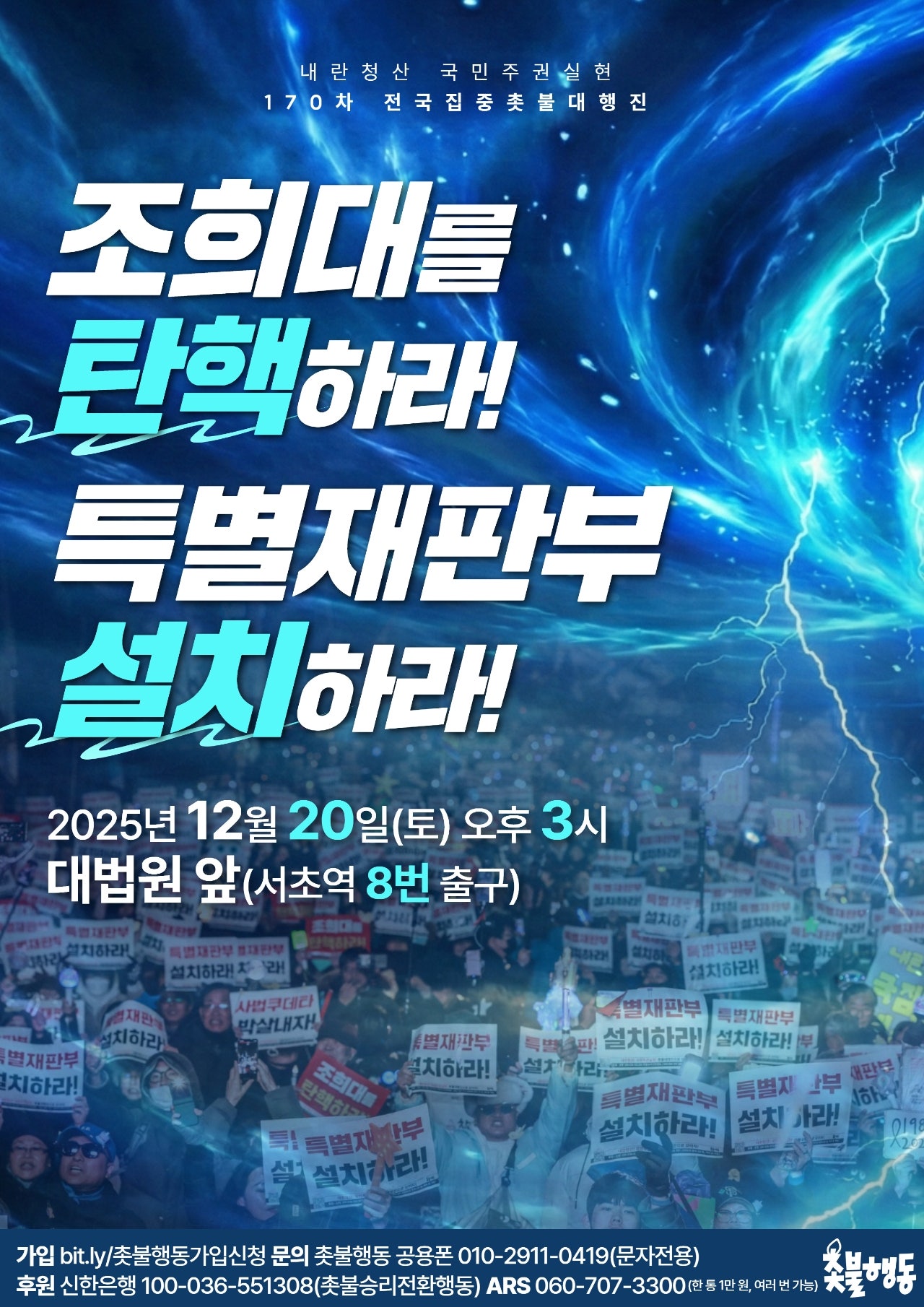 서울 12월20일(토) 3시 대법원 앞 (서초역 8번 출구) 내란청산 170차 전국집중 촛불대행진